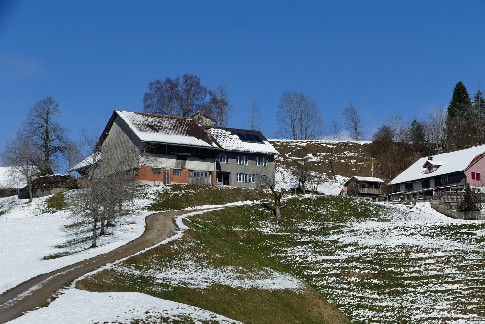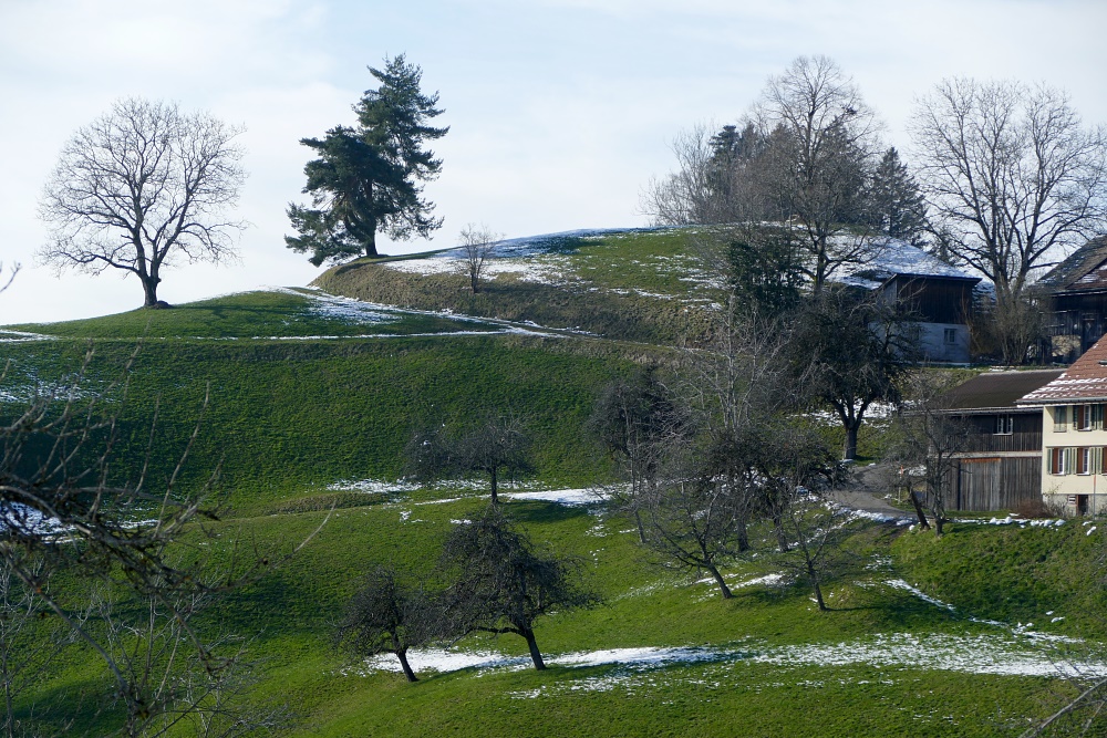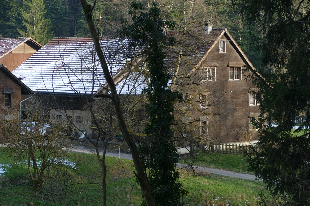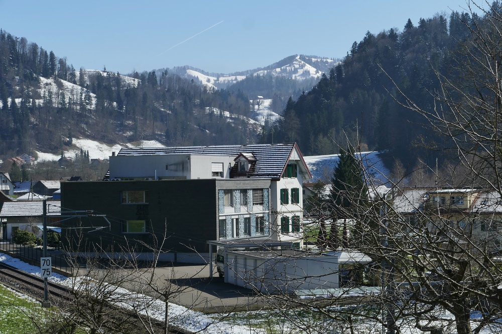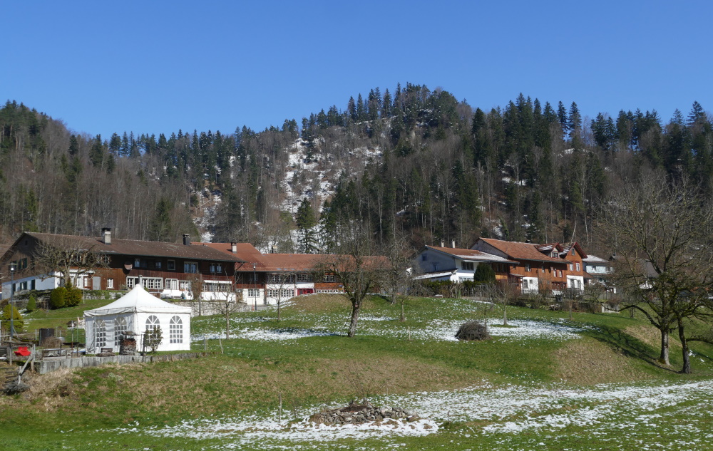 Blick über die Töss Richtung Hörnli. Kurz zuvor ist noch Schnee gefallen, der jetzt aber langsam wegtaut.