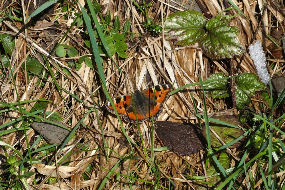 der kleine Fuchs ist angesichts der wärmenden Sonne bereits in Wartestellung.