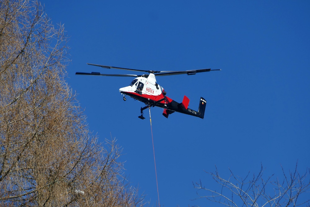 Der Trag-Hubschrauber ist nun dauernd bei der Arbeit zu bewundern.