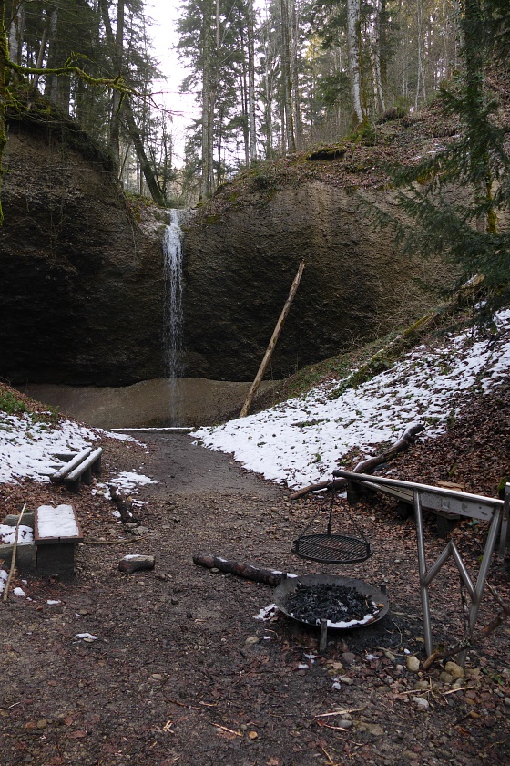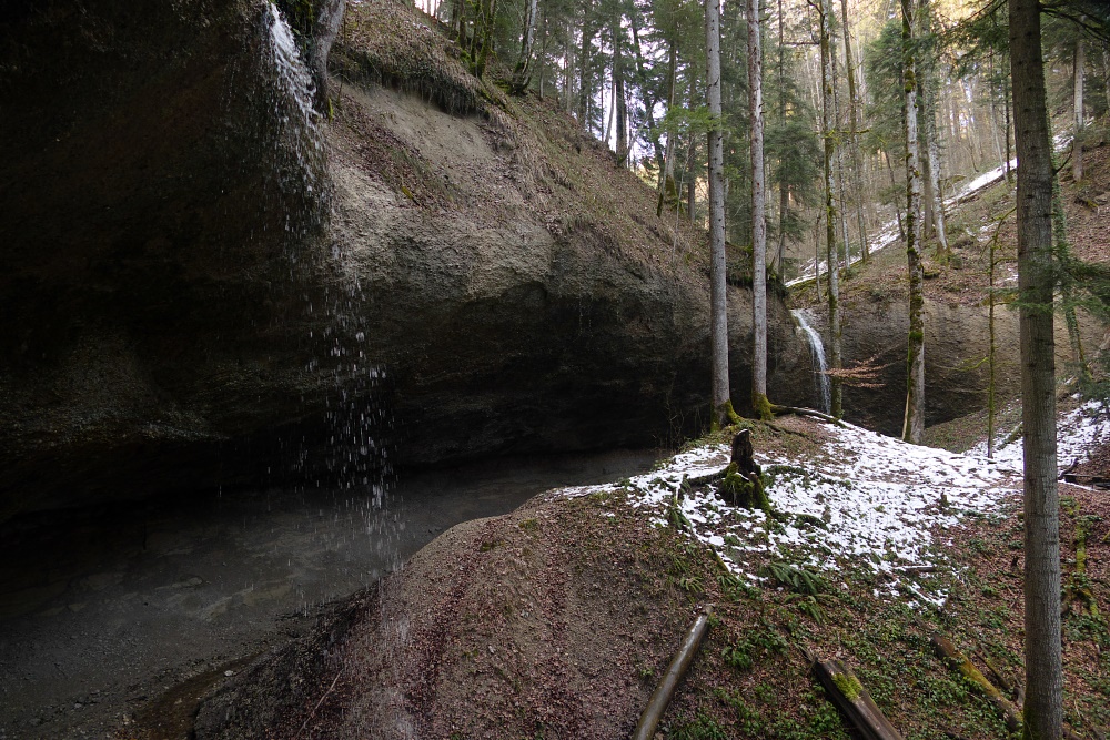 Gegenüber befindet sich ein weiterer Wasserfall von einem Zufluss des Nideltobelbaches