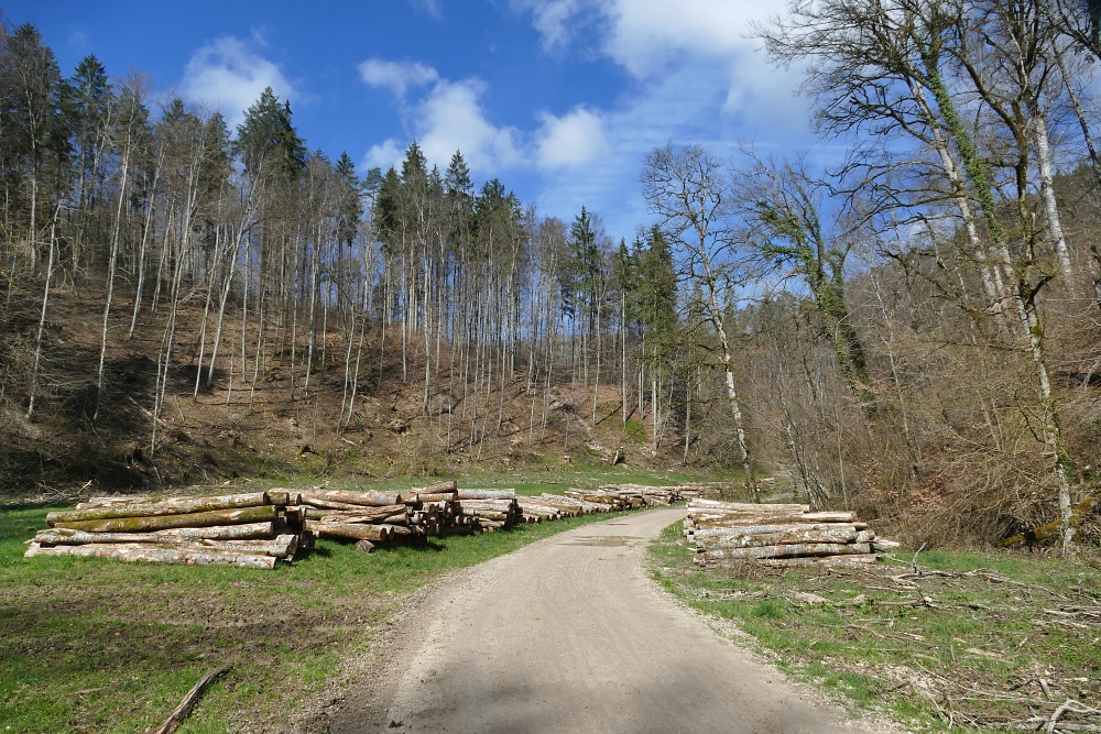 Bald darauf erreiche ich einen gangbaren Forstweg.