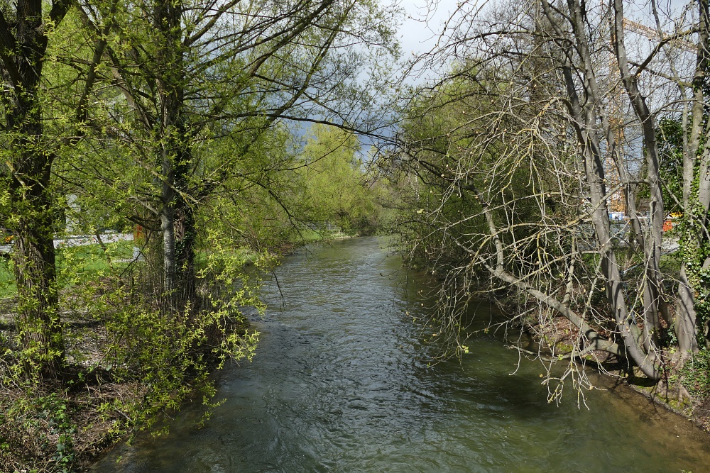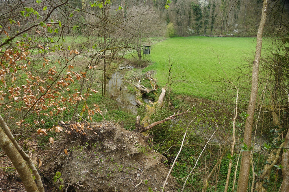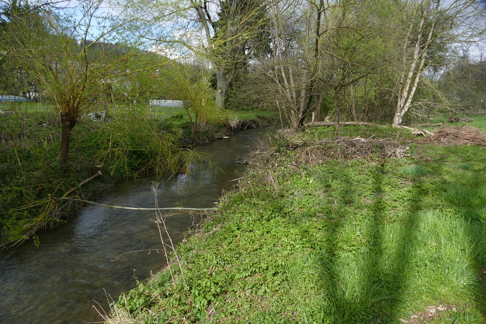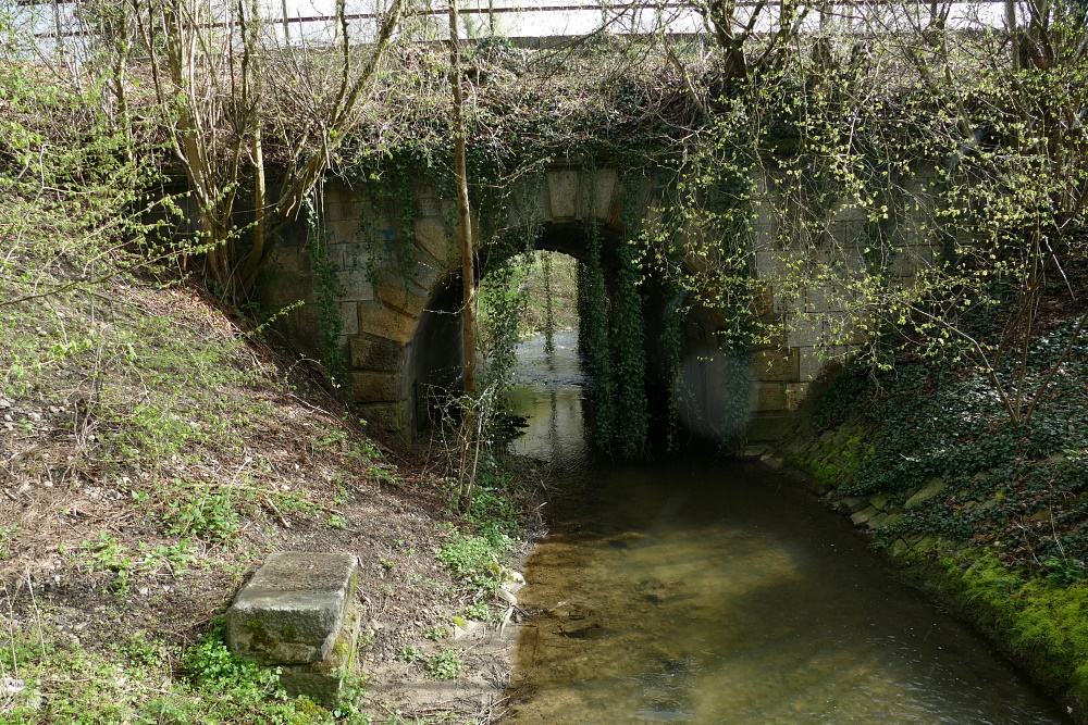 Der Riederbach unterquert die Bahnschienen bei Gottmadingen