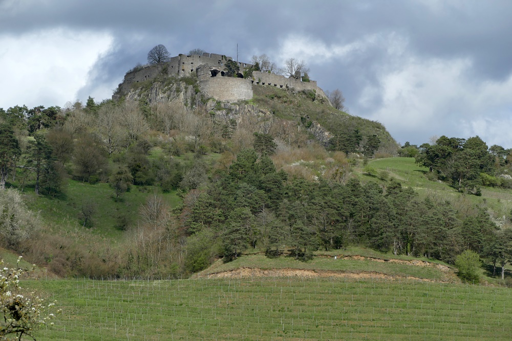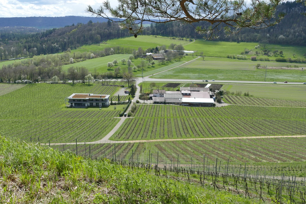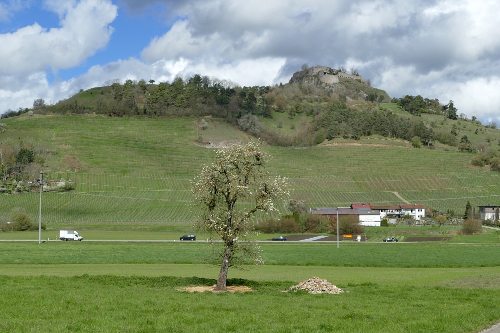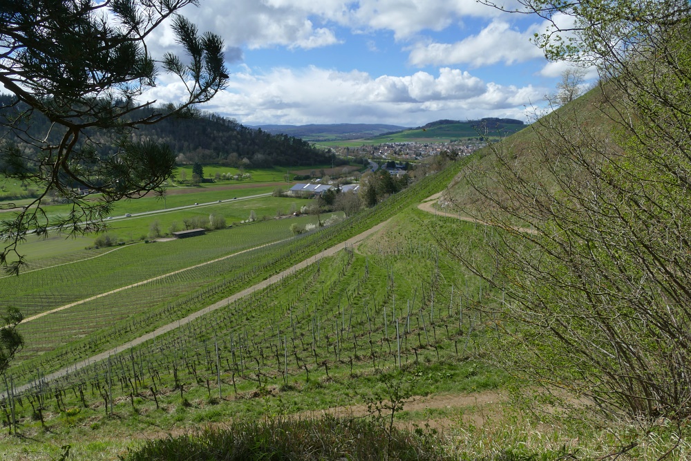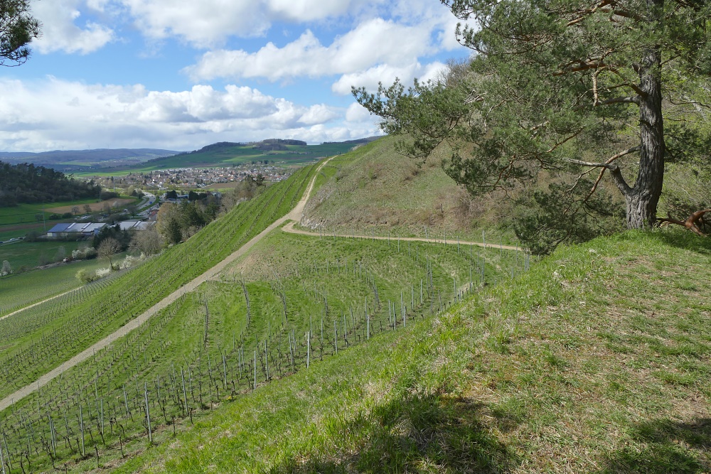 Rebflächen am Hohentwiel, dahinter Twielfeld und Hilzingen