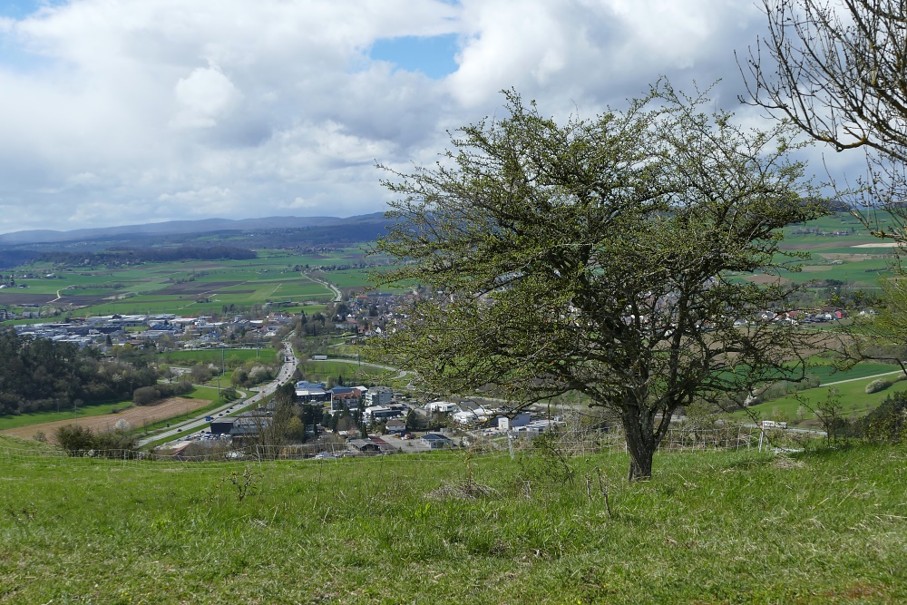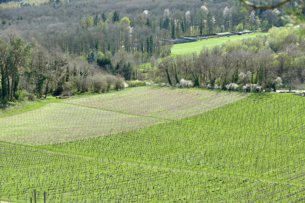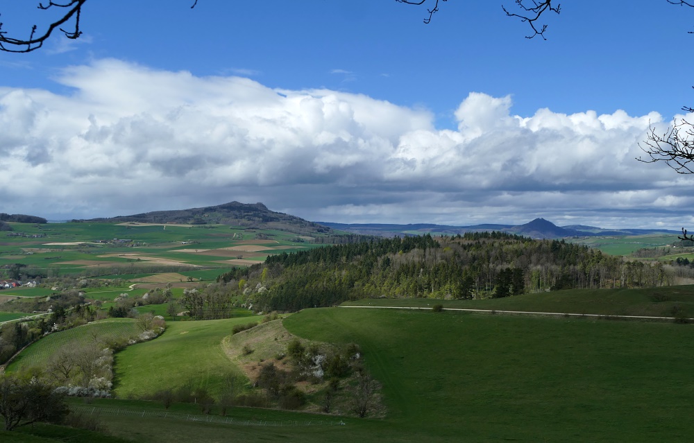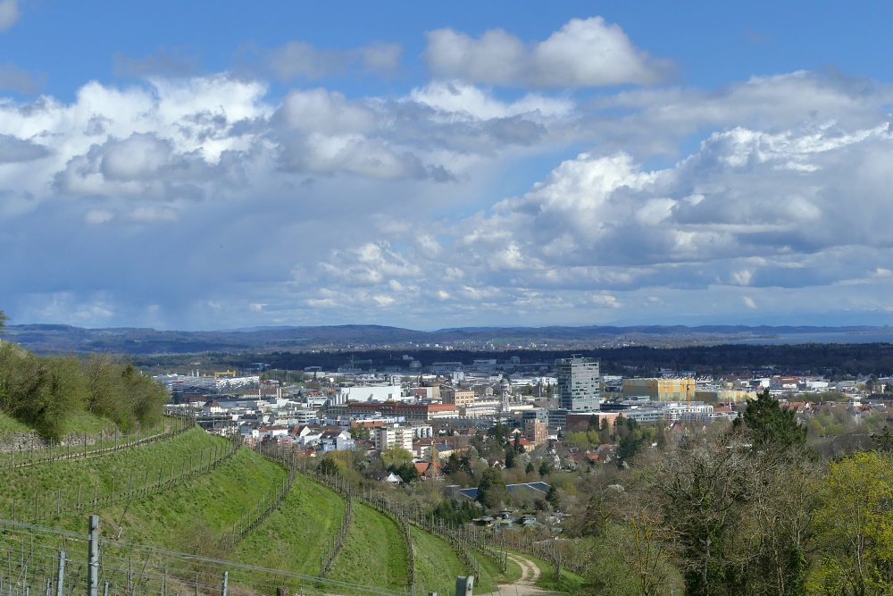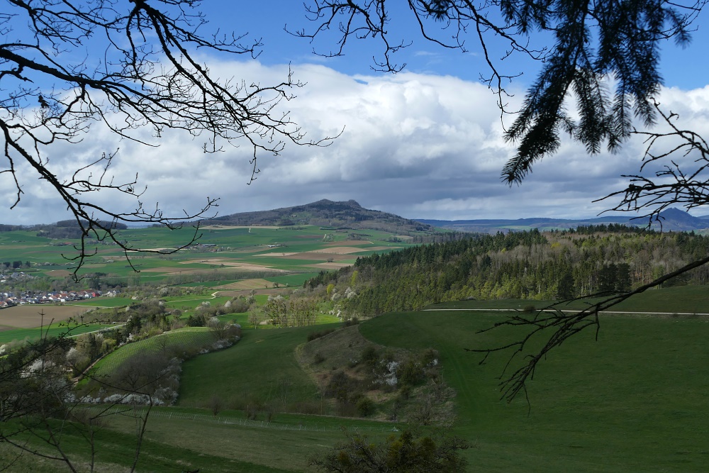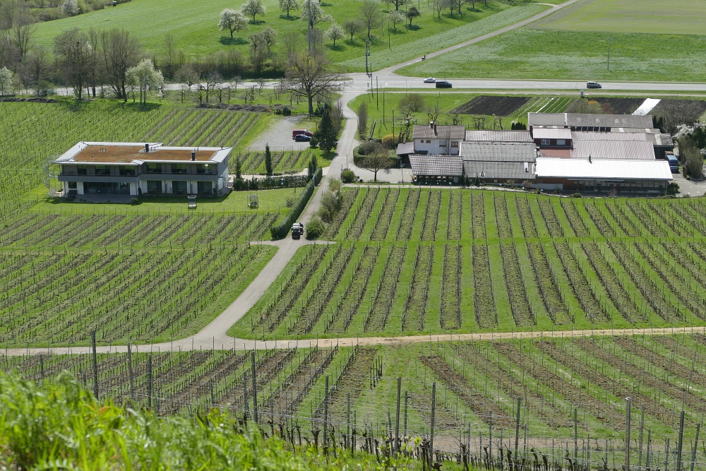Rebflächen am Hohentwiel, dahinter Twielfeld und Hilzingen