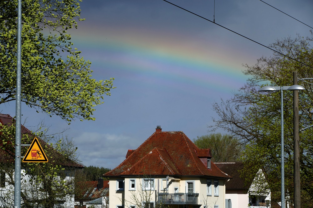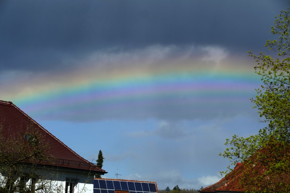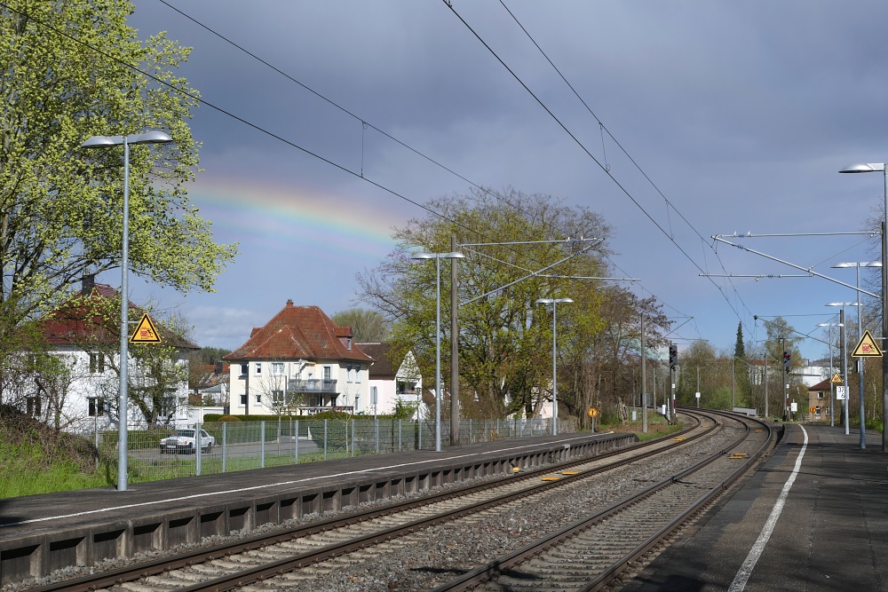 Regenbogen überm Bahnhof Gottmadingen, hier sogar mit Interferenzbögen zu sehen