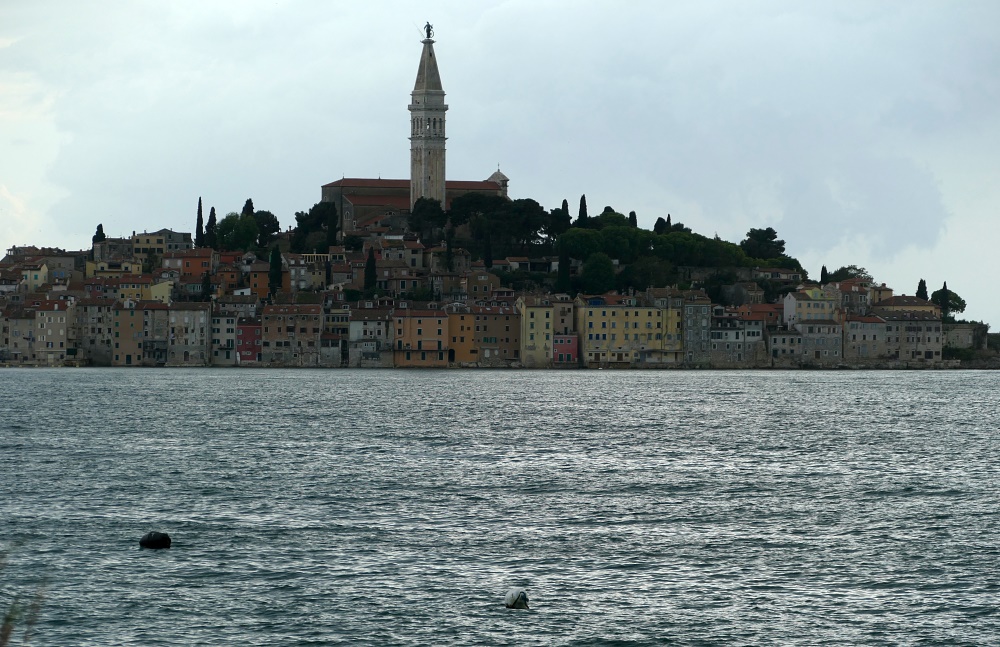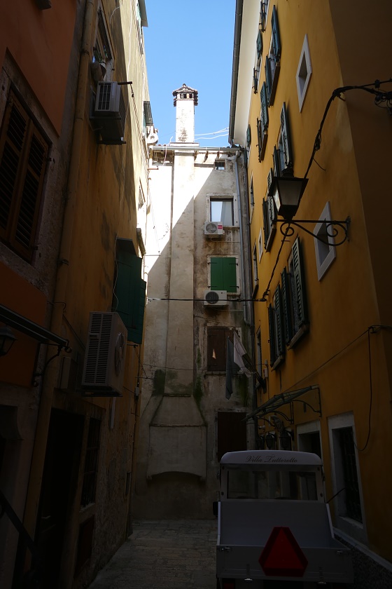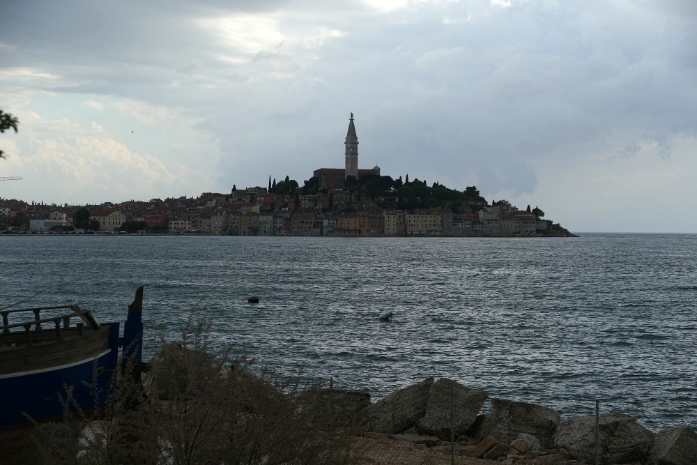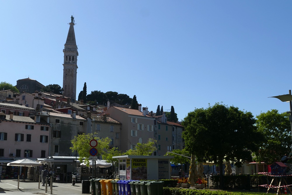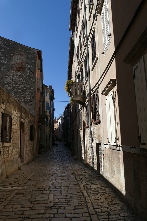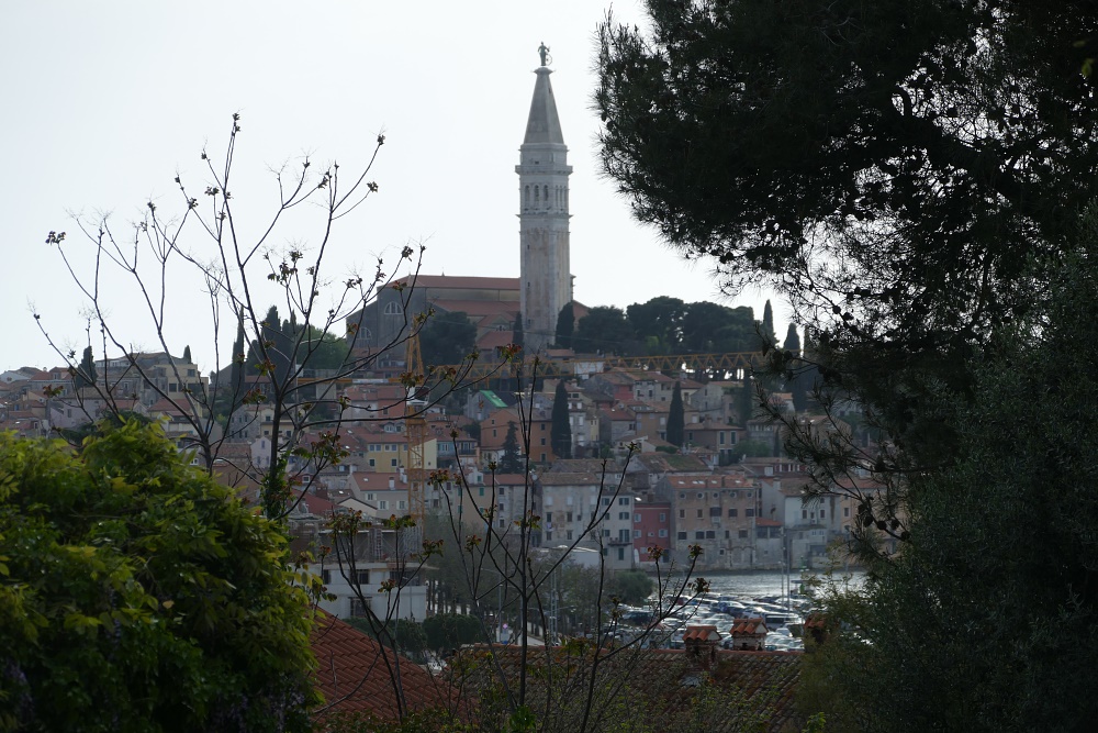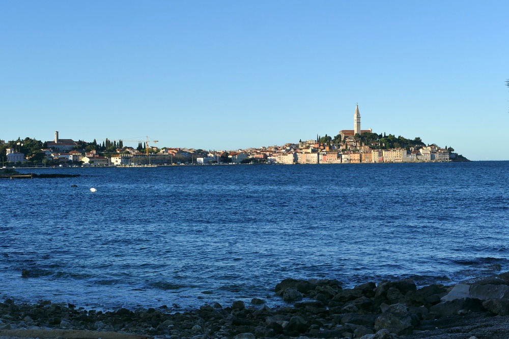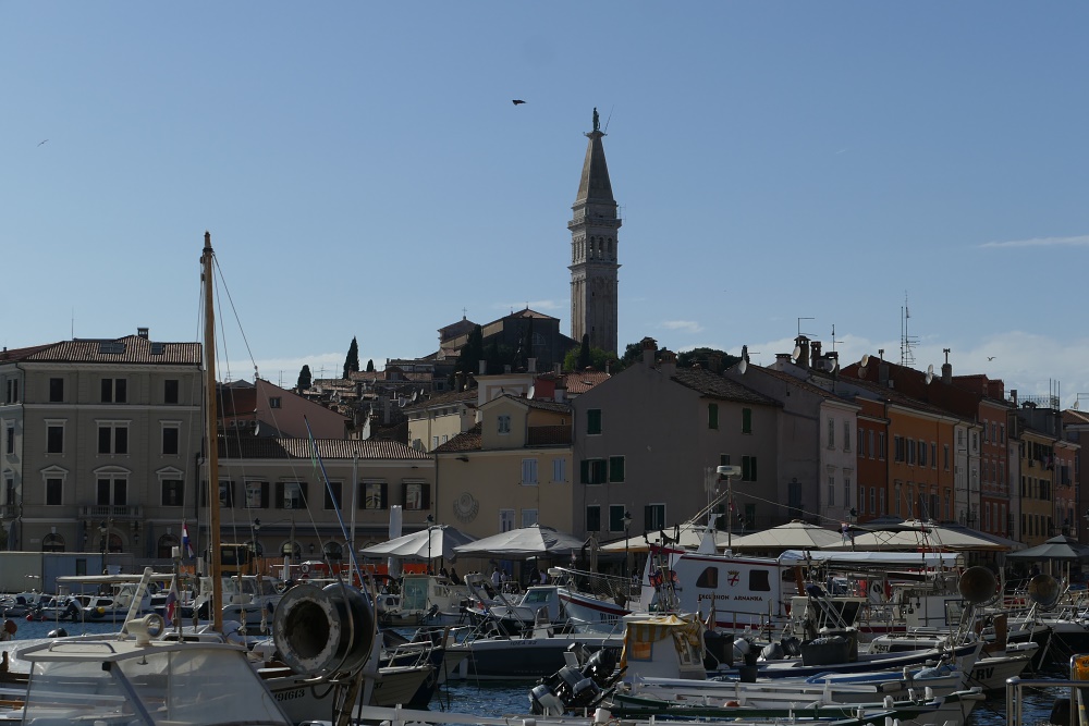 Nachdem wir in der Nähe von Rovinji übernachtet haben, machen wir uns am nächsten Tag auf, um das Städchen zu besuchen. Noch liegen die Gebäude aus dieser Perspektive gesehen im tiefen Schatten.