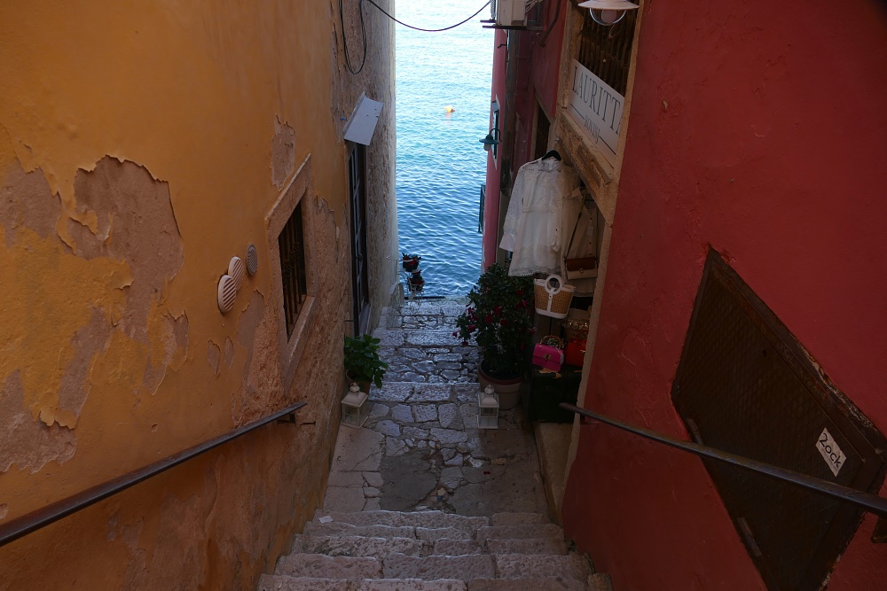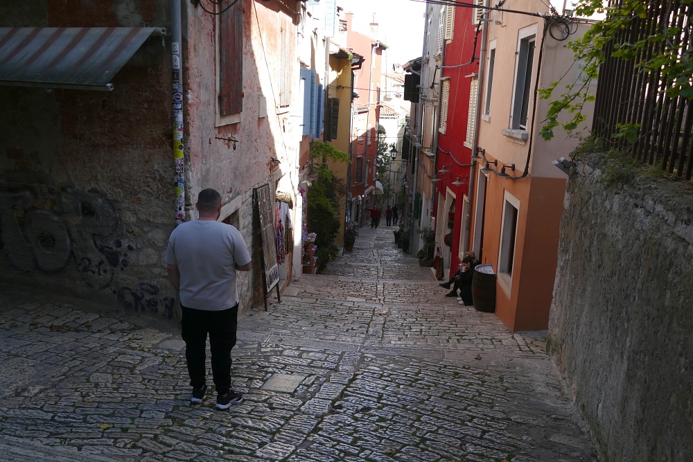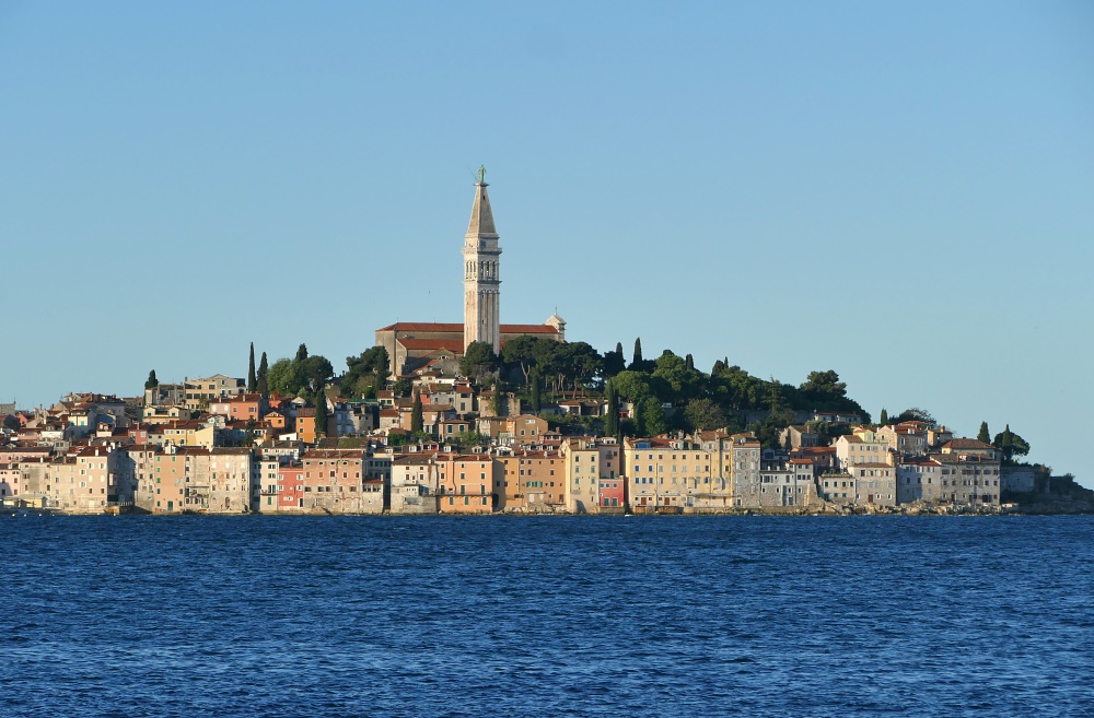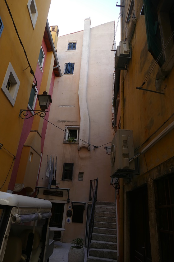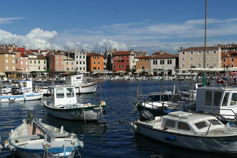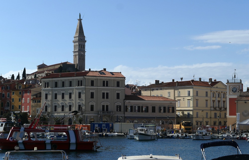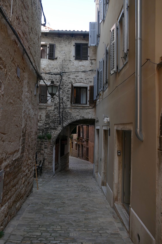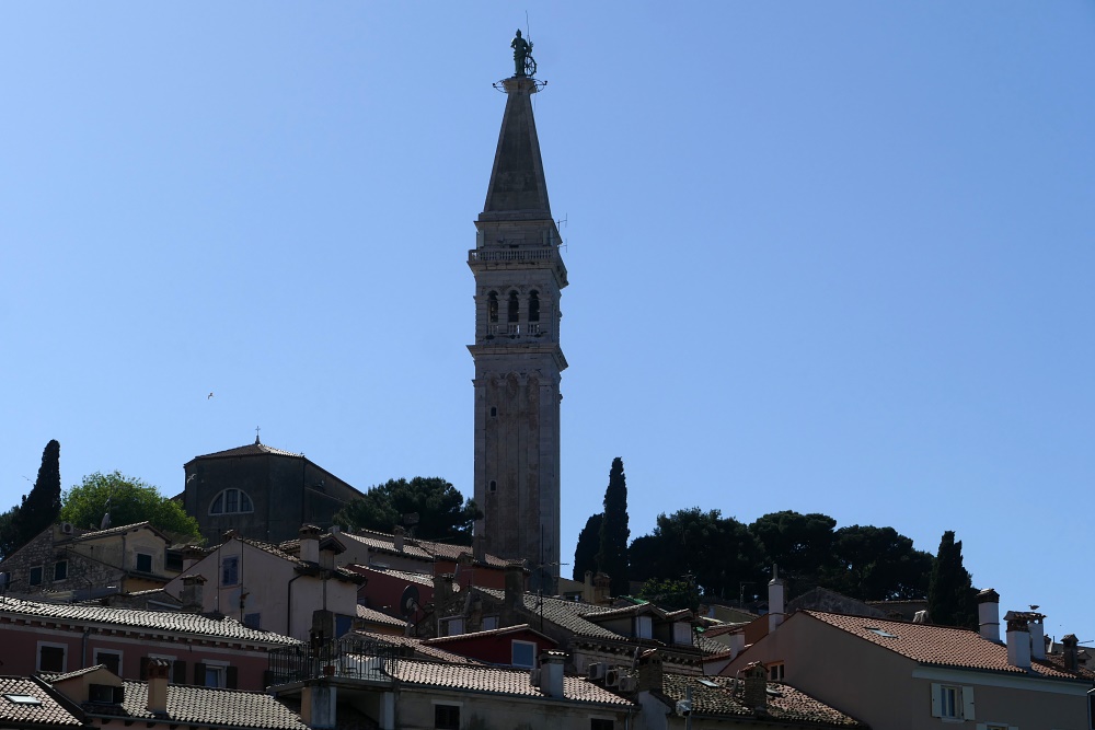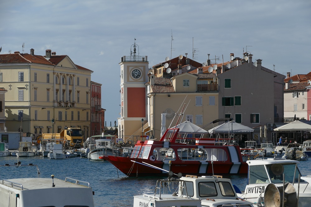 Nachdem wir in der Nähe von Rovinji übernachtet haben, machen wir uns am nächsten Tag auf, um das Städchen zu besuchen. Noch liegen die Gebäude aus dieser Perspektive gesehen im tiefen Schatten.