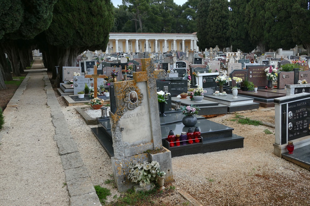 Rovinji ist erreicht. Hier hat sich ein Bauherr einen schönen Pavillon nach dem Vorbild eines griechischen Tempels erstellt.