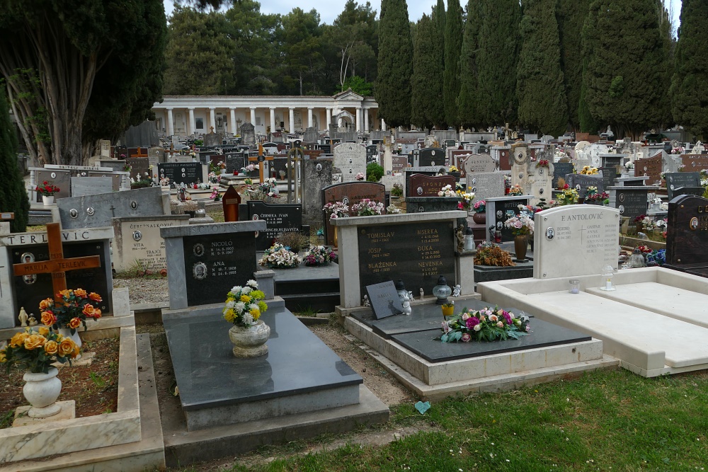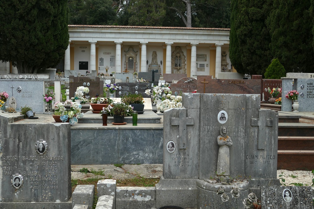 Bald locken mich ungewöhliche Bauten; erst beim Näherkommen erinnere ich mich, dass hier die Bestattungsbräuche eine andere Friedhofskultur hrvorbringen als es in Deutschland üblich ist.
