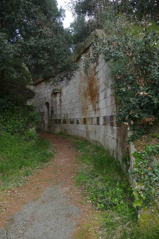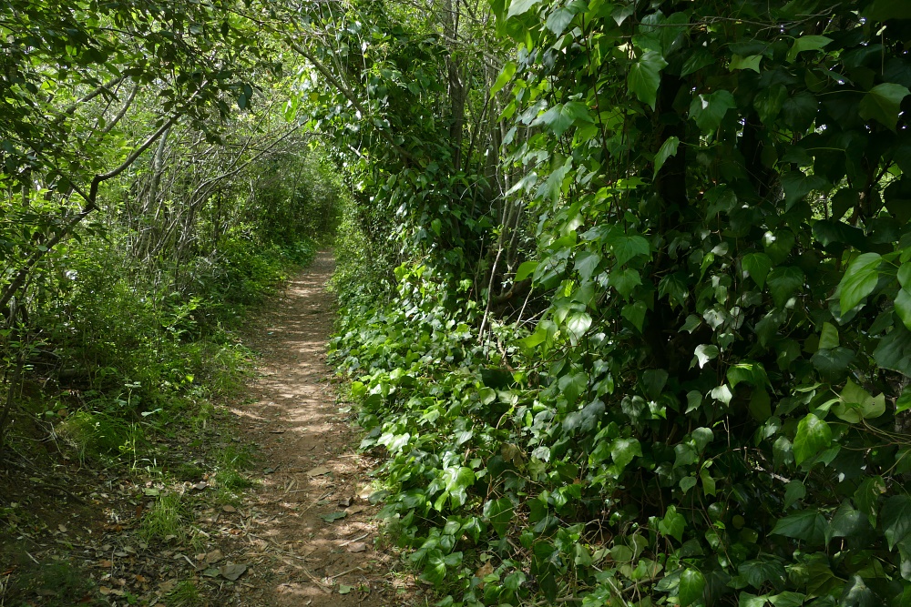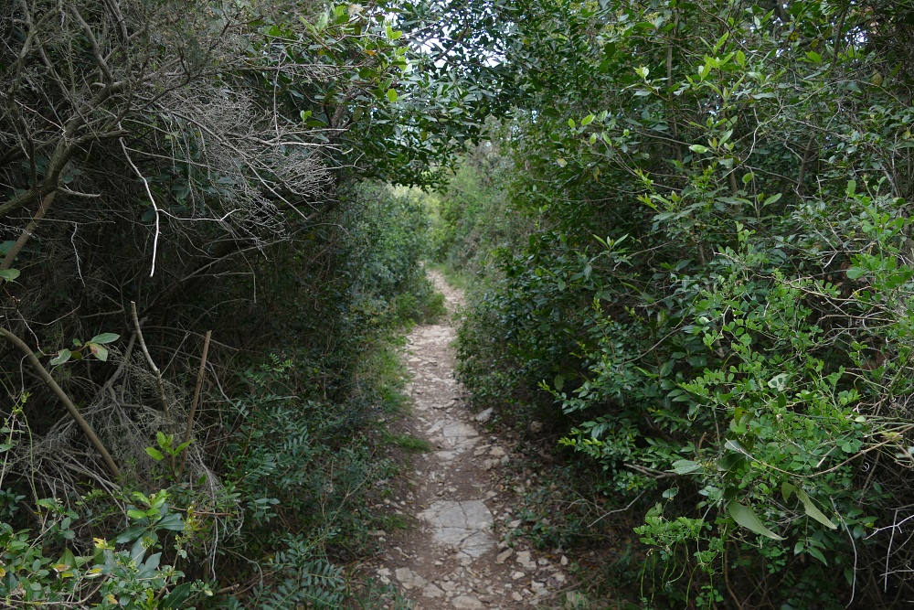 Nach einer längeren Strecke am Hafen und einer von einer hohen Mauer gesäumten Allee entlang, erreicht die Straße bald unbesiedeltes Gelände. Die Straße biegt nun nach Süden ab, auf einem Wanderweg erfolgt der Weiterweg hinunter zur Küste.