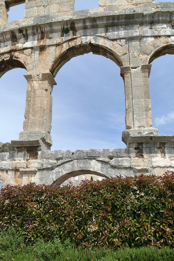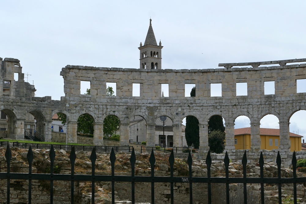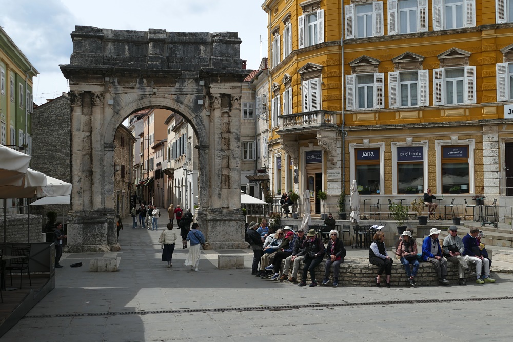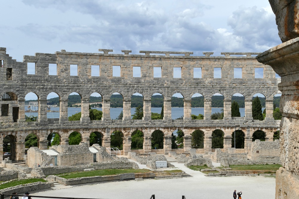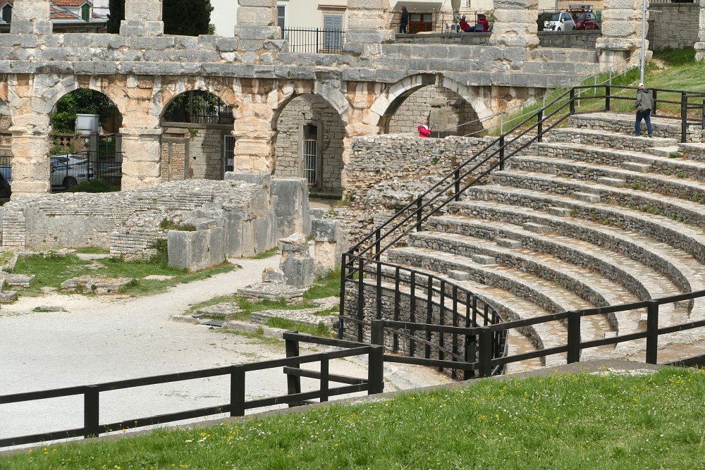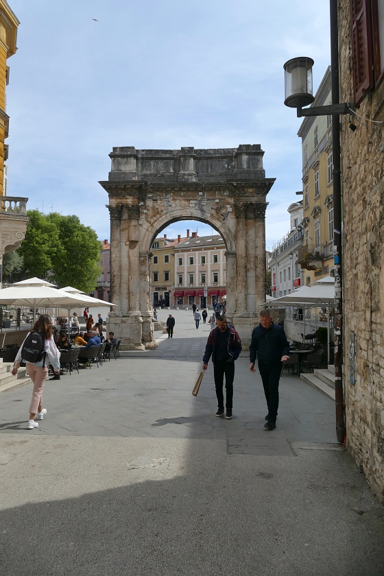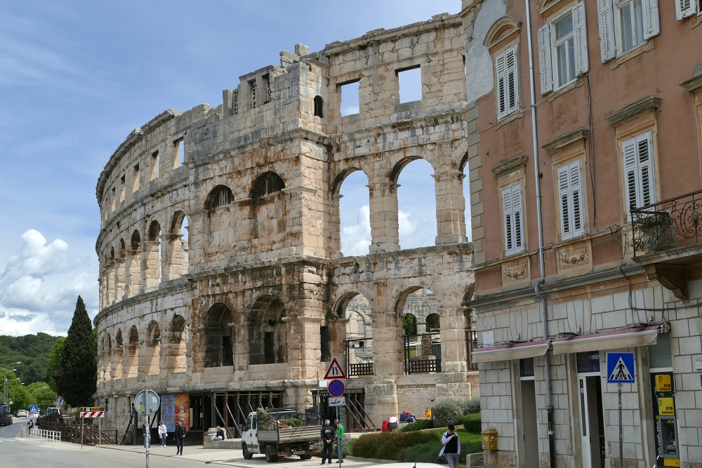 Hier sind auch diverse, kaum von Touristen besuchte Bars und Gaststätten. Nach einer längeren Pause und einer Stärkung bei einem Mittagsmahl, geht es weiter zu der Hauptattraktion in Pula