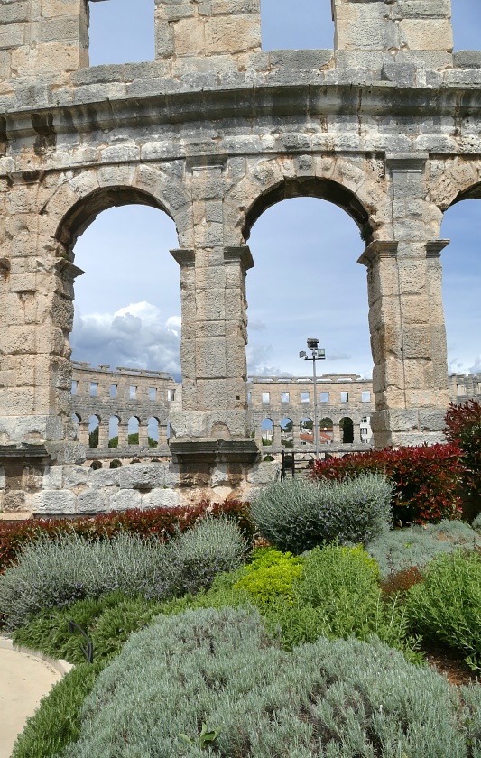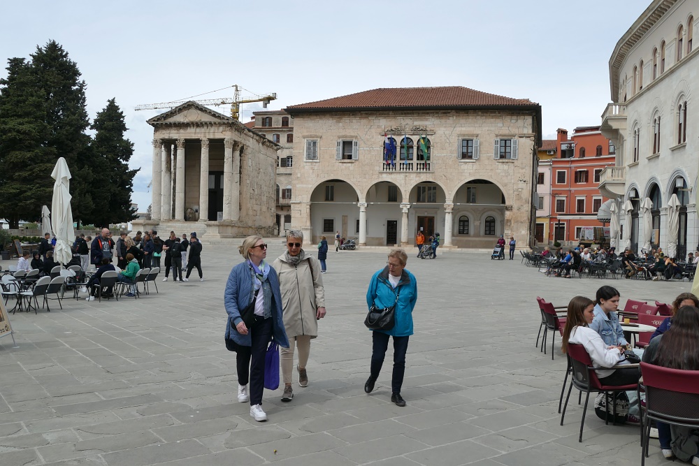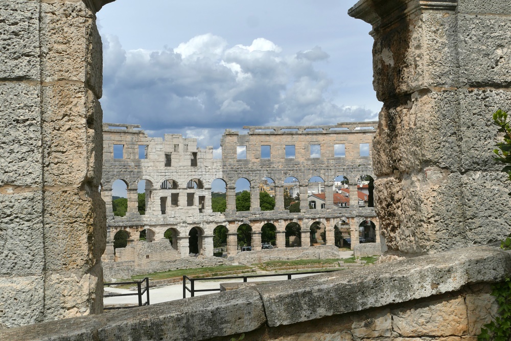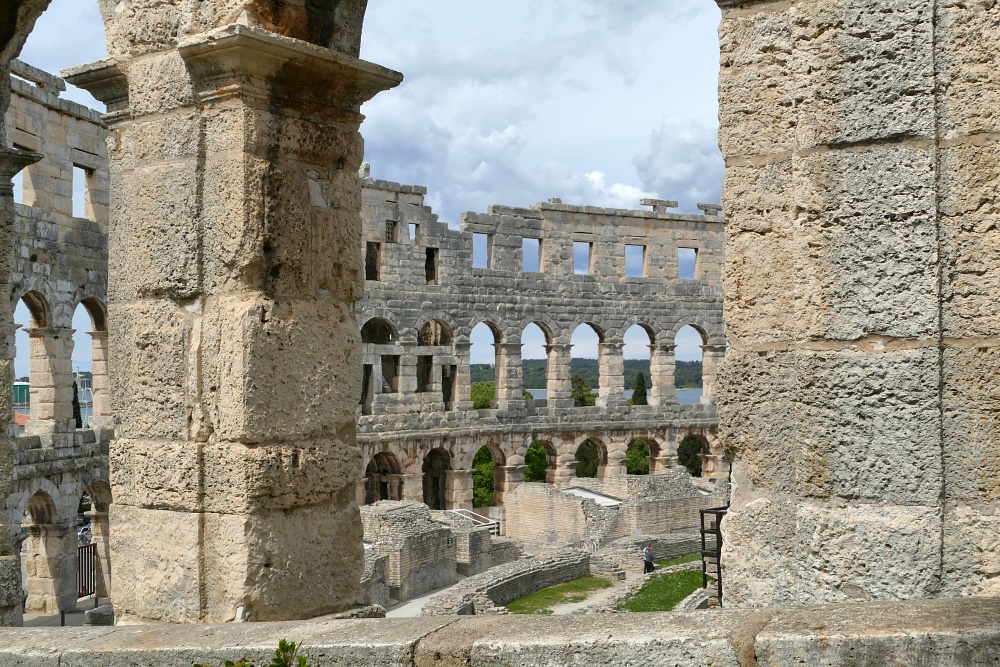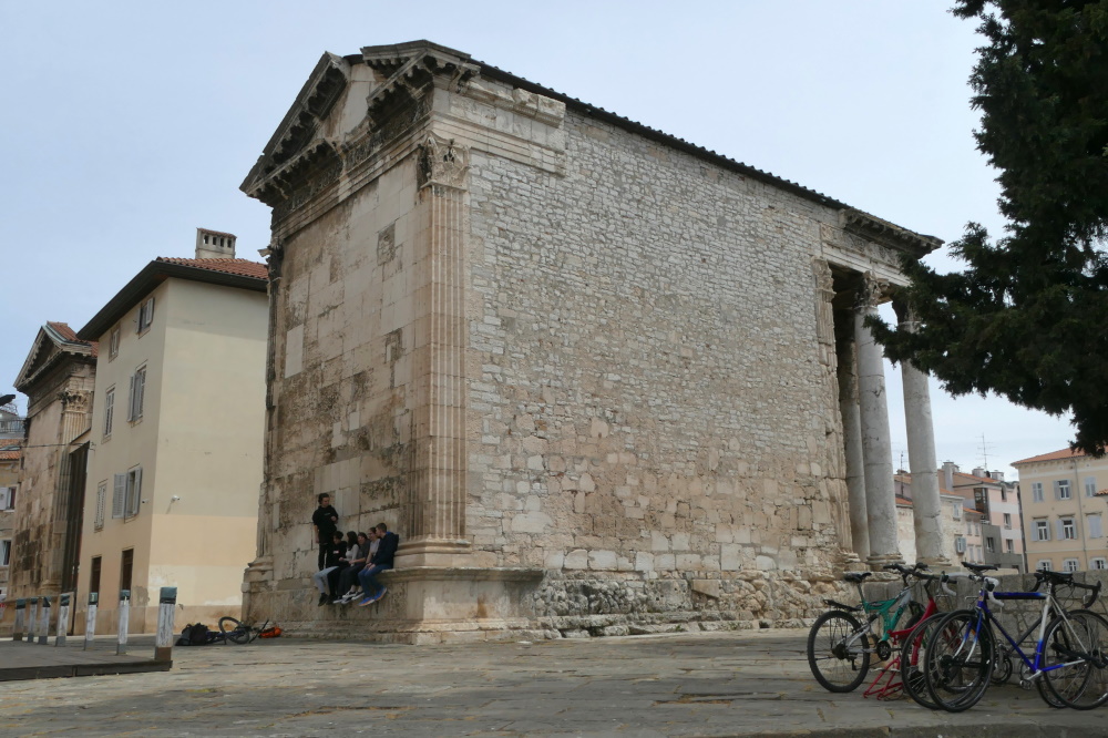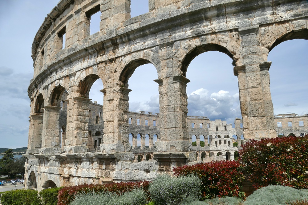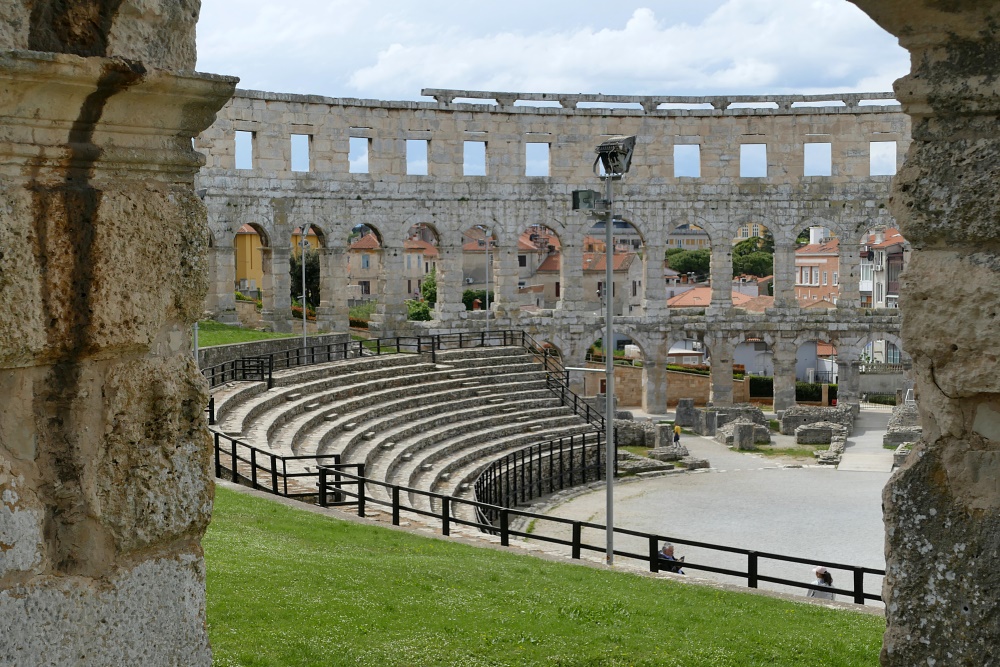 Hier sind auch diverse, kaum von Touristen besuchte Bars und Gaststätten. Nach einer längeren Pause und einer Stärkung bei einem Mittagsmahl, geht es weiter zu der Hauptattraktion in Pula
