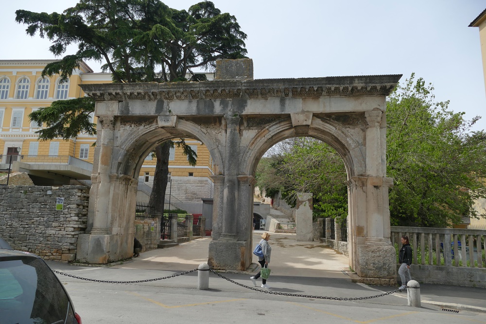 Doppelbogen-Stadttor "Porta Gemina", eines der ehemals zehn Stadttore in Pula (2./3. Jhdt.).
