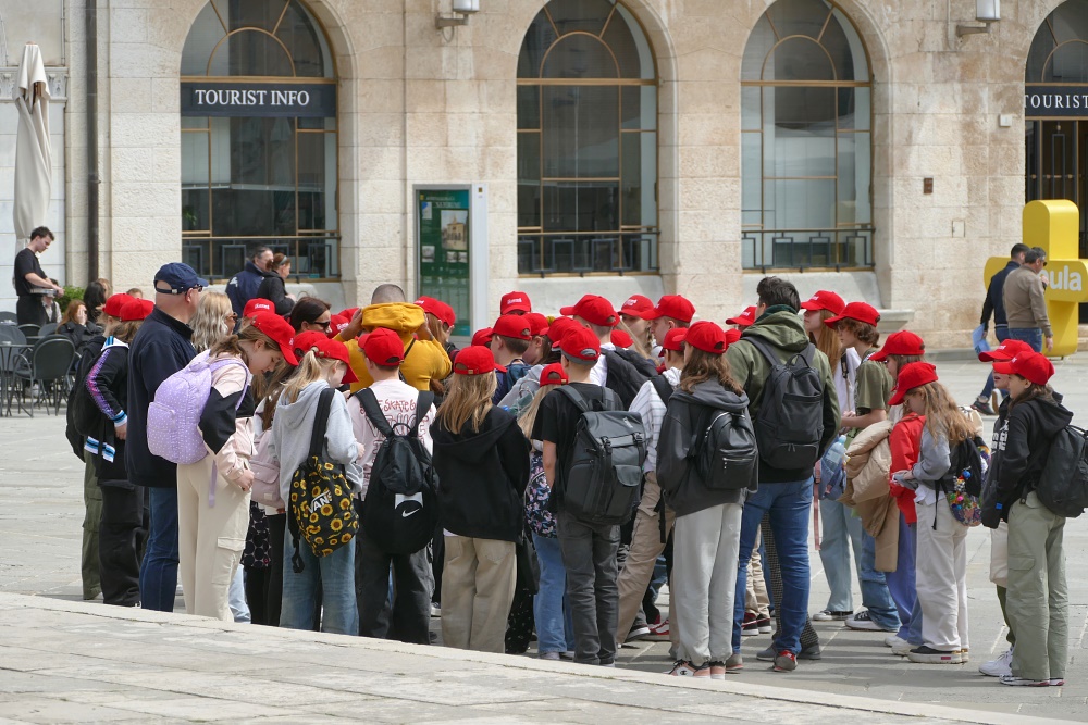 Schulklassen werden durch die Altstadt gelotst.