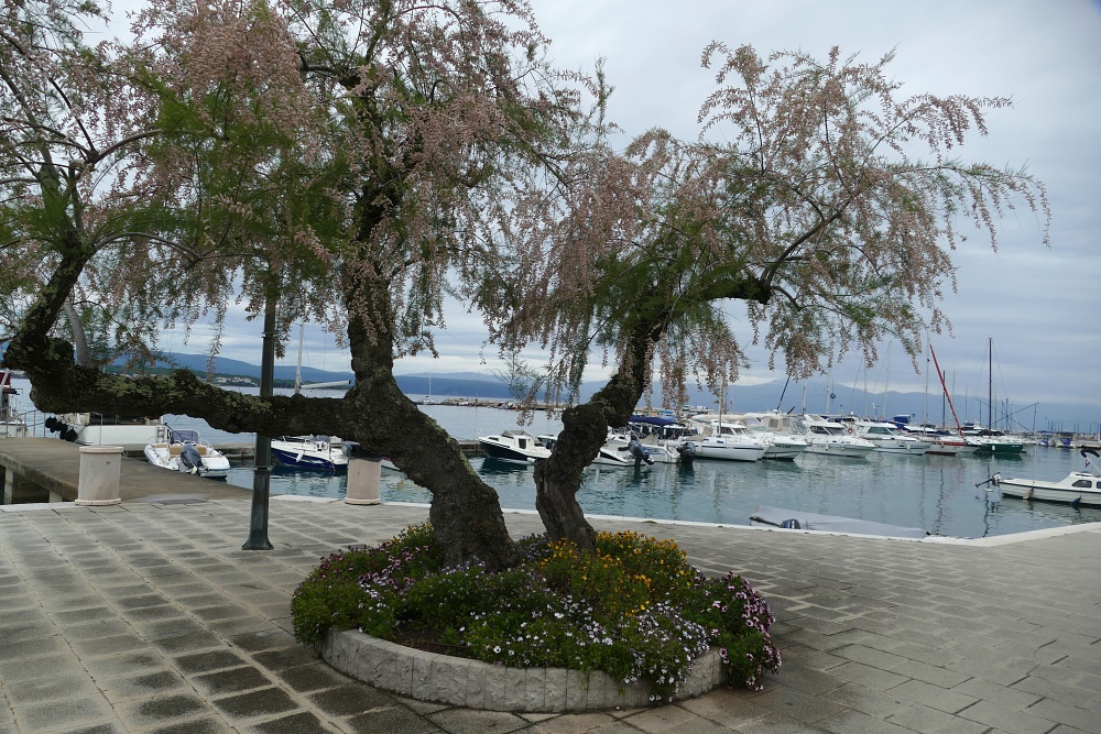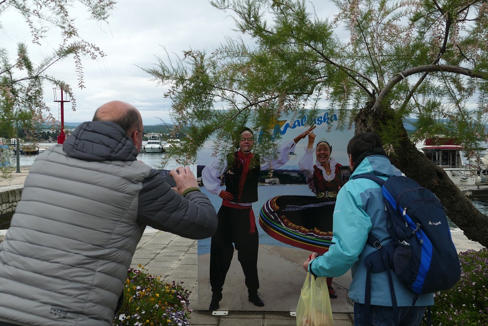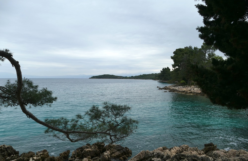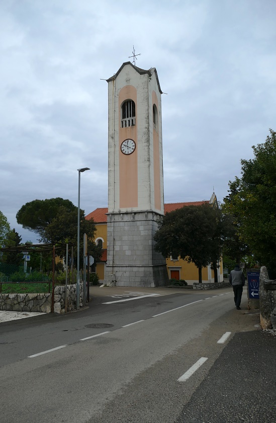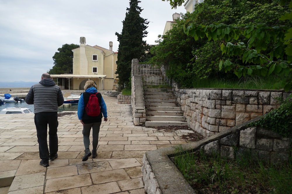 Bei der Kirche des Hl. Apollinaris in Malinska startet am heutigen Tag unsere Küstenwanderung nach Njivice. Allerdings hat sich der Himmel deutlich eingetrübt, so dass wir uns auch auf Regenwetter einstellen müssen.