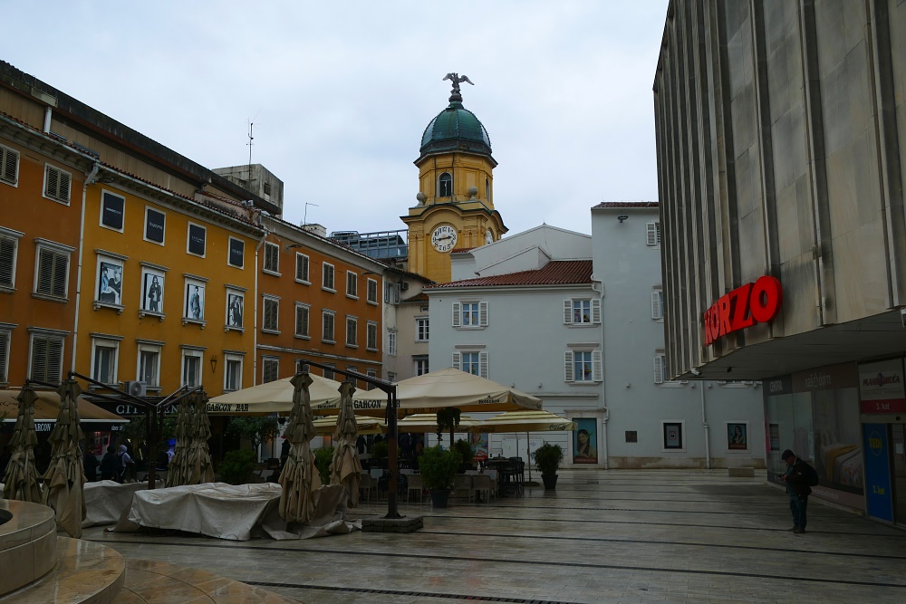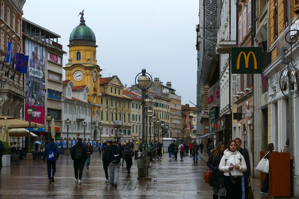 Fußgängerzone in Rijeka mit dem Stadtturm