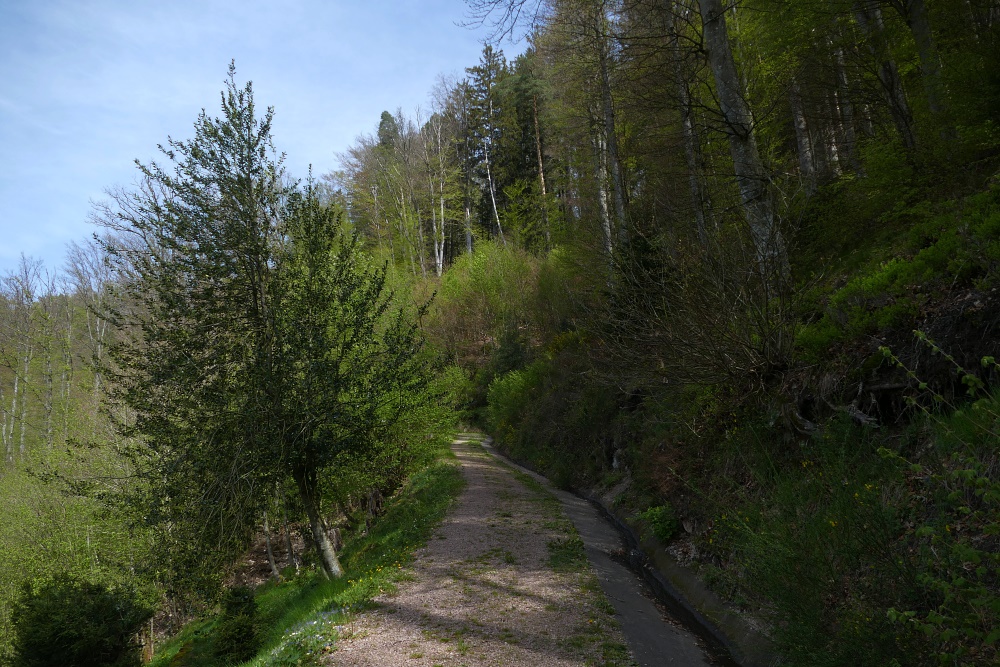 auf dem Abschnitt Gremmelsbach - Hohnen: inzwischen laufe ich wortwörtlich über den Gremmelsbacher-Tunnel hinweg; der Bau des zweitlängsten Tunnels war einer der schwierigsten Unterfangen. Hier befinde ich mich bereits beim Bauernhof "Am Riflitz".