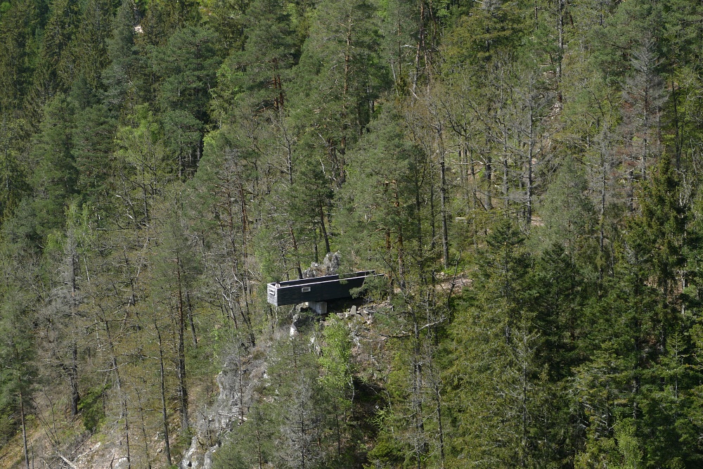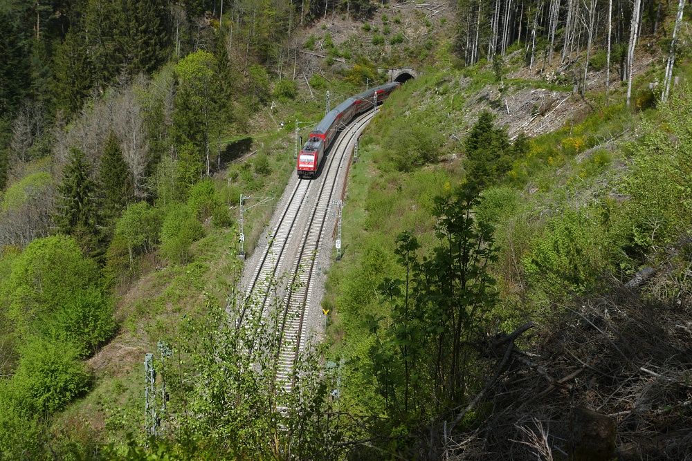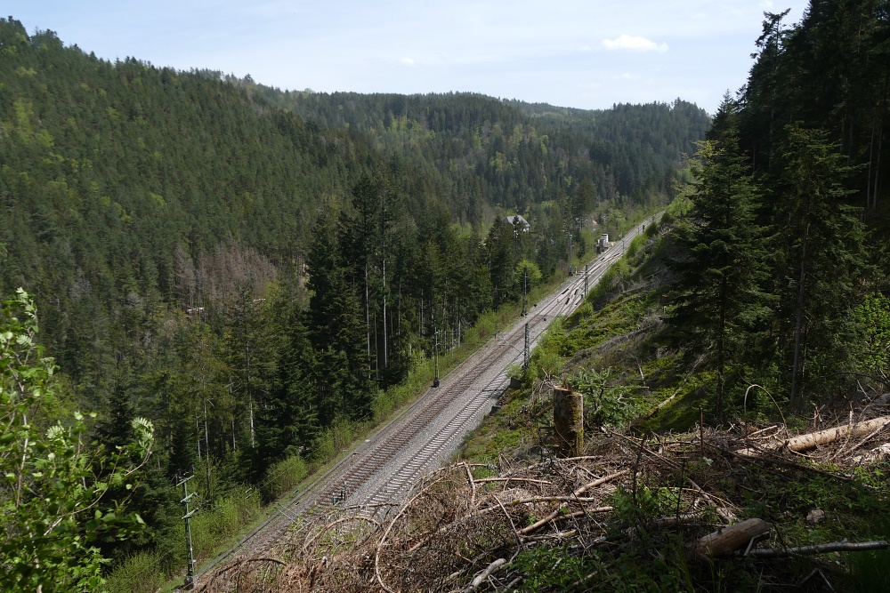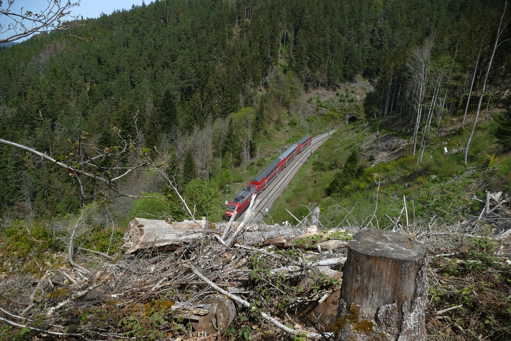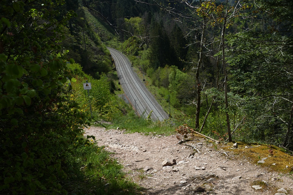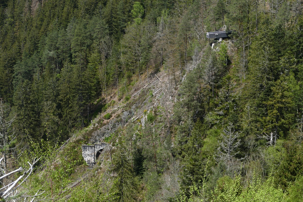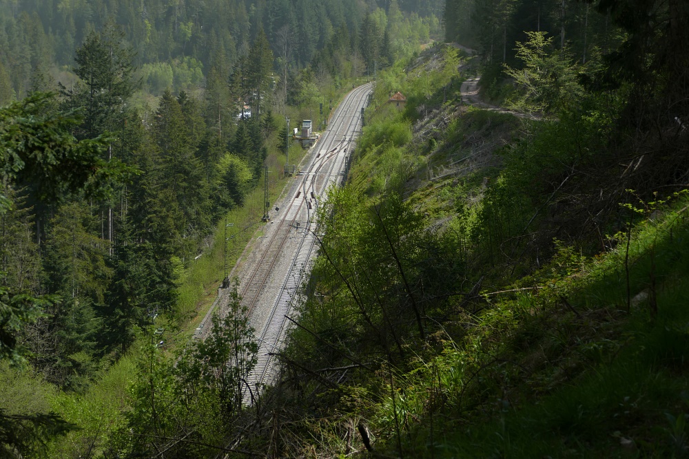 Auf meiner Seite des Hanges bewundert man an einem Aussichtspunkt, wie die Züge durch den Gummambstunnel fahren.