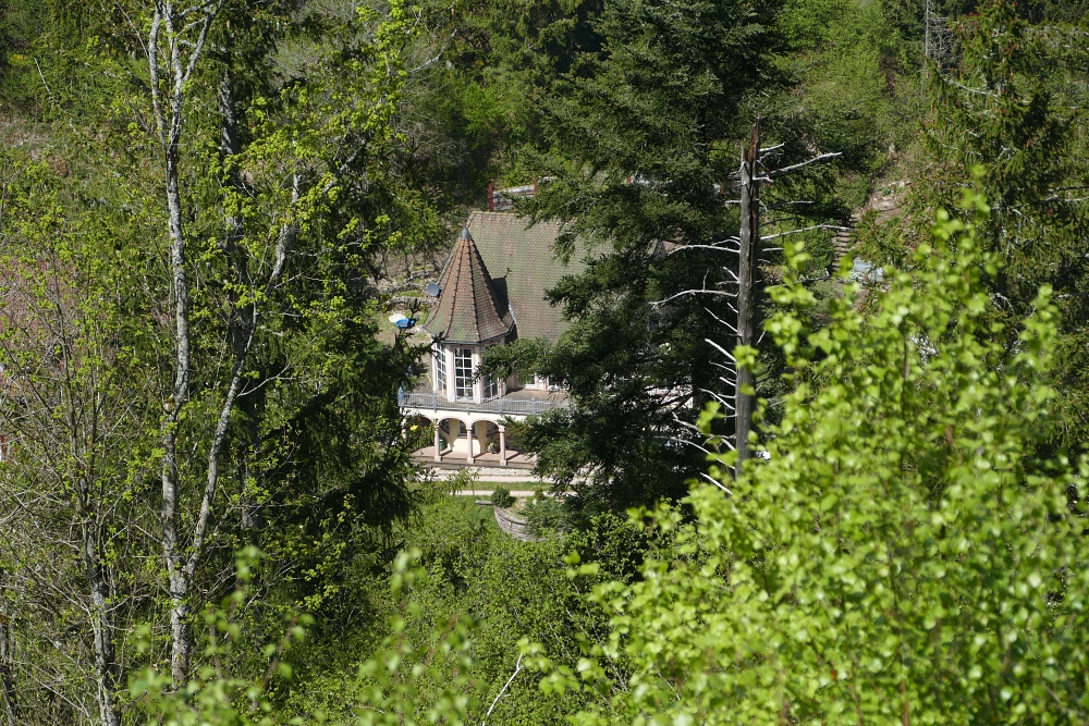 Nun geht es auf Serpentinen steil hinunter zum Uhrenpark an der Gutach
