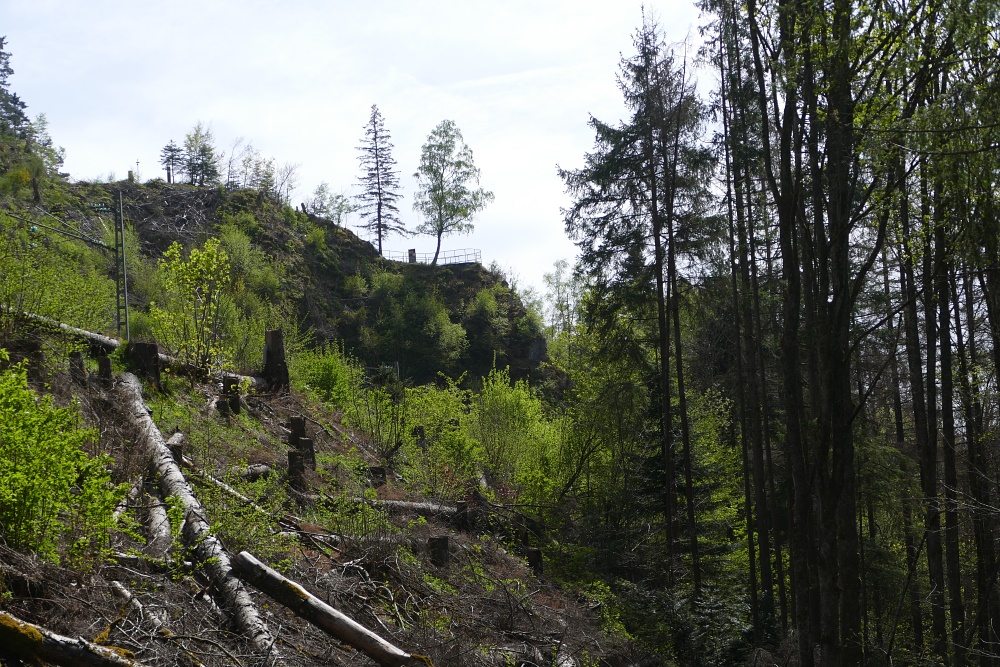 in der Ferne ist die Plattform "Vierbahnenblick" sichtbar; ich stehe am "Dreibahnenblick".
