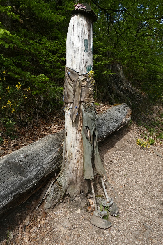 Wandererskelett-Kunstfigur am Abstiegsweg