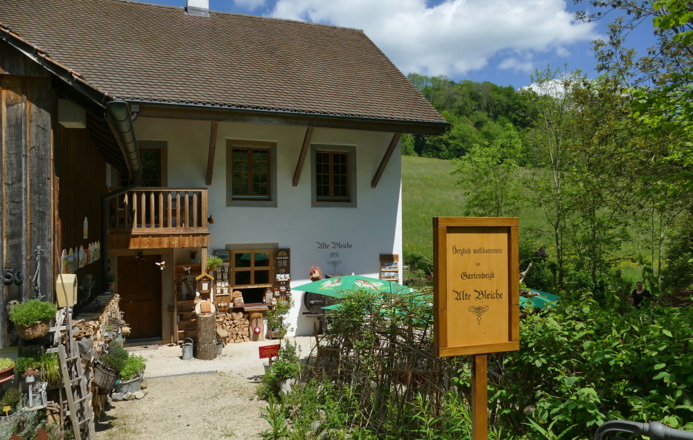 Kurz darauf treffen wir am Dorfbach auf die "Alte Bleiche", die zu einem kleinen Beizli umgebaut ist.