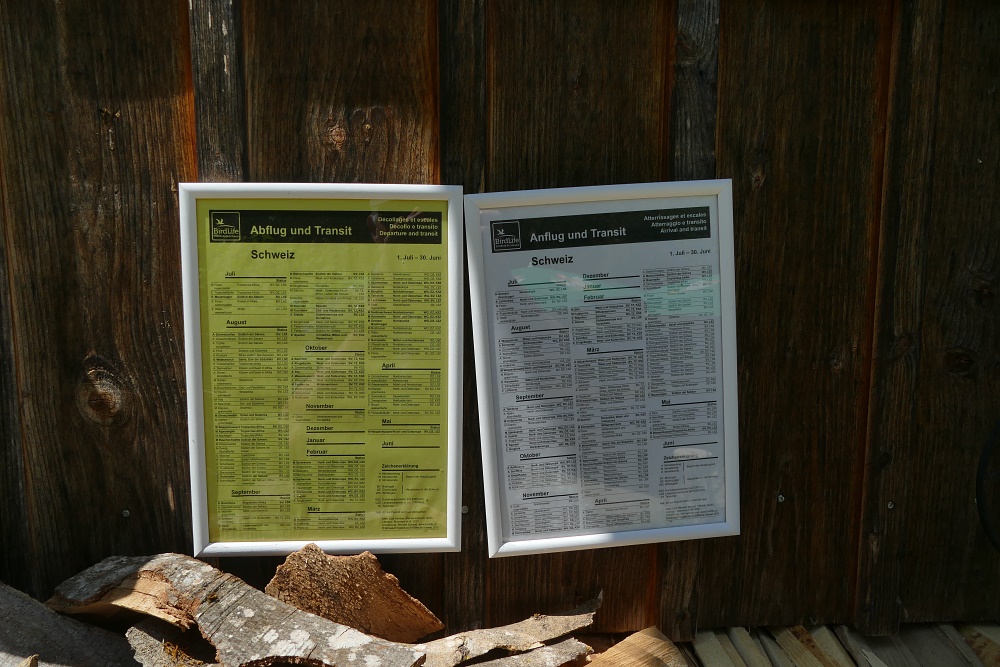 hier führt zwar keine Bahnlinie vorbei, trotzdem sind hier Zugpläne ausgehängt. Es handelt sich allerdings um die Züge der Zugvögel.