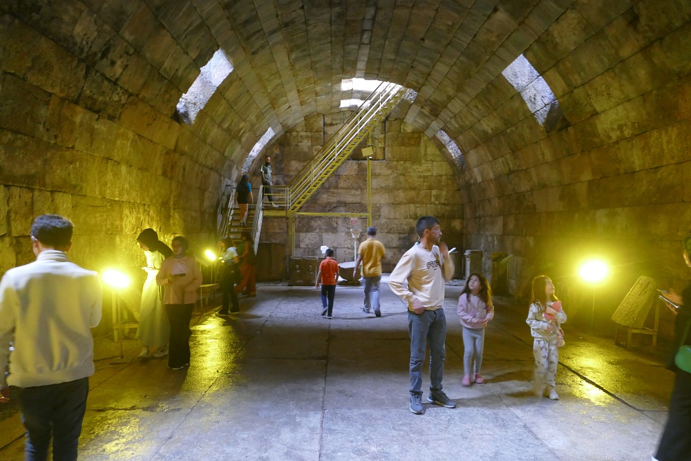 Über eine steile Treppe geht es in den Untergrund: der Zeustempel besitzt nämlich ein darunter liegendes Tonnengewölbe mit Lichtfenstern, das vermutlich als Kultraum diente (wikipedia)