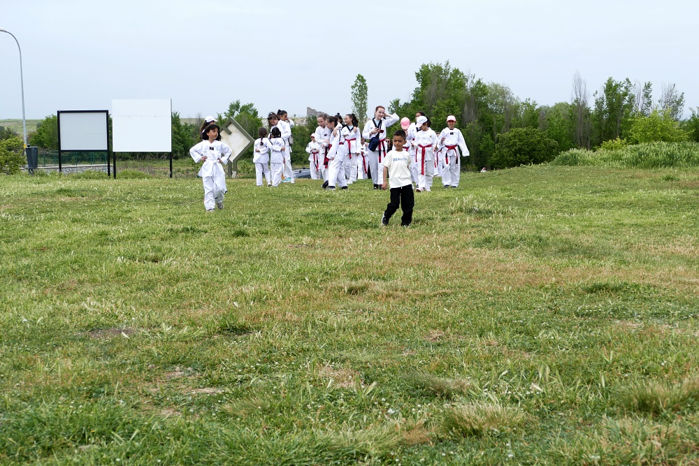 Eine Gruppe junger Judokas praktiziert ihren Kampfsport, bevor die Jungs und Mädchen den Tempel bestaunen.