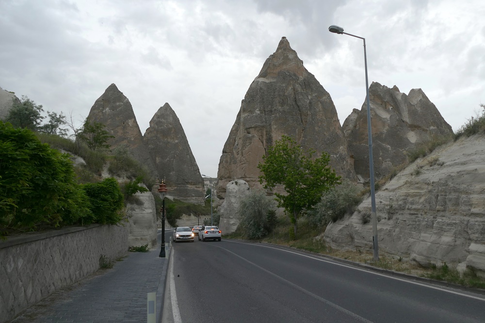 Wir steigen nun über die geteerte, sehr steile Straße (auf der manche Busse Schwierigkeiten haben) ab zum vorher erwähnten Parkplatz und von dort über die Hauptstraße wieder zurück nach Göreme.