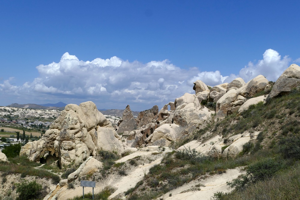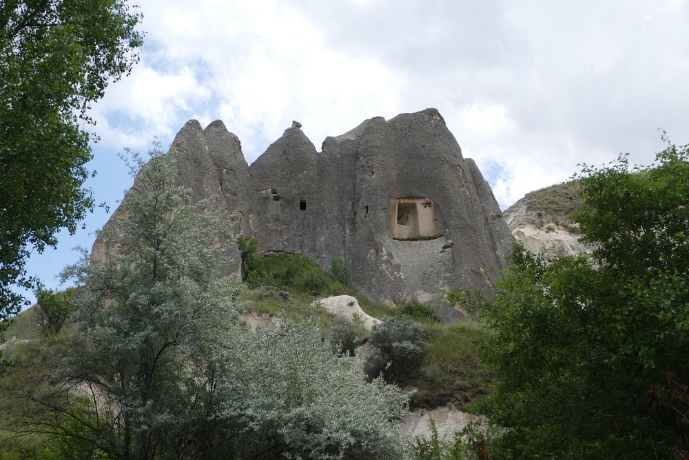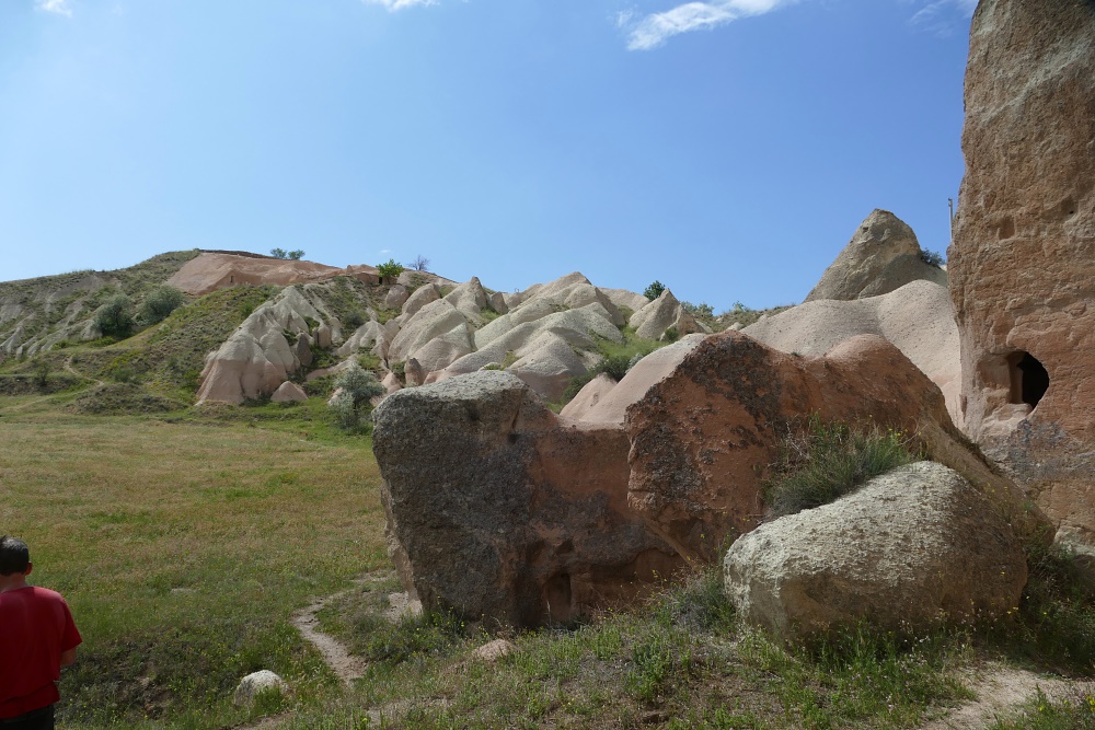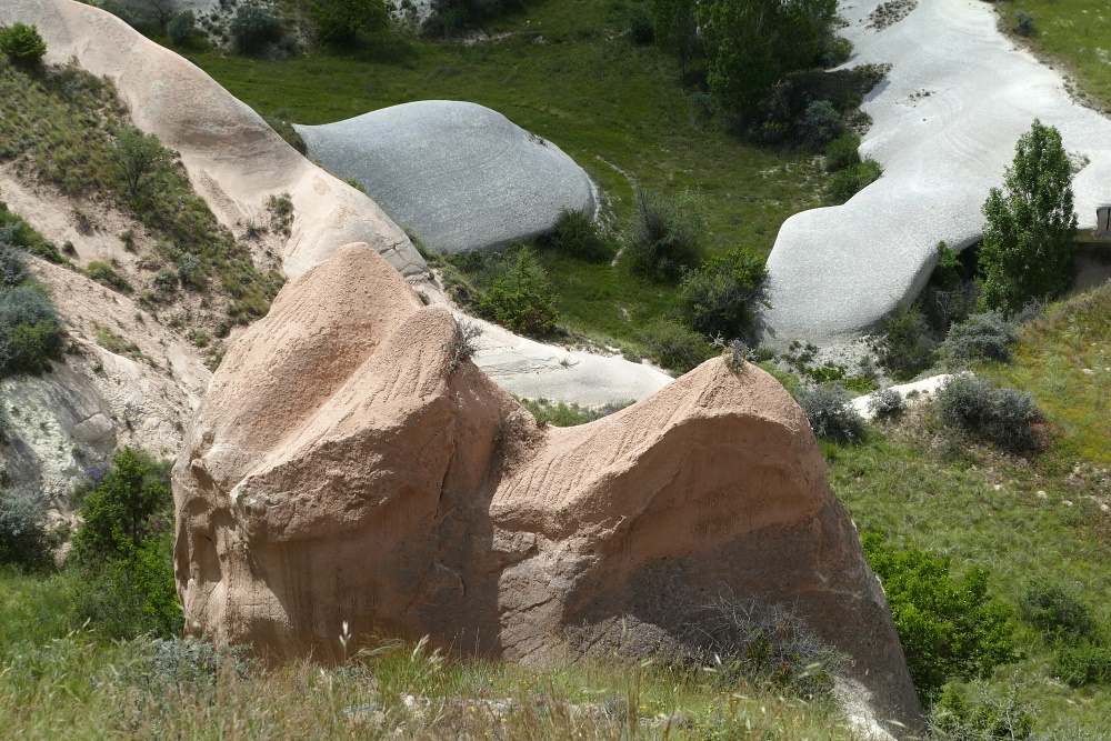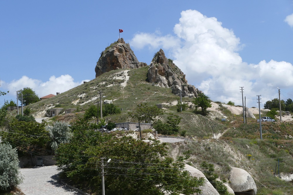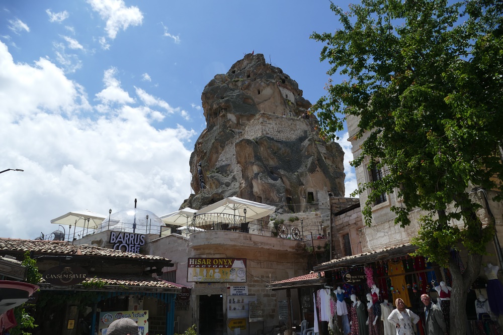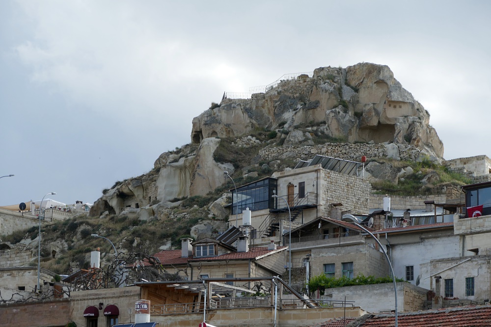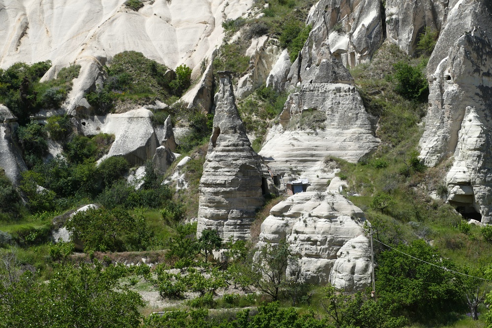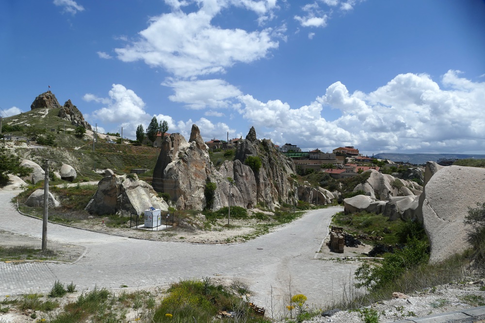 Wir haben die Hauptstraße überquert und schlendern durch Ortahisar. Auch mitten im Dorf sind interessante Formationen zu bewundern.