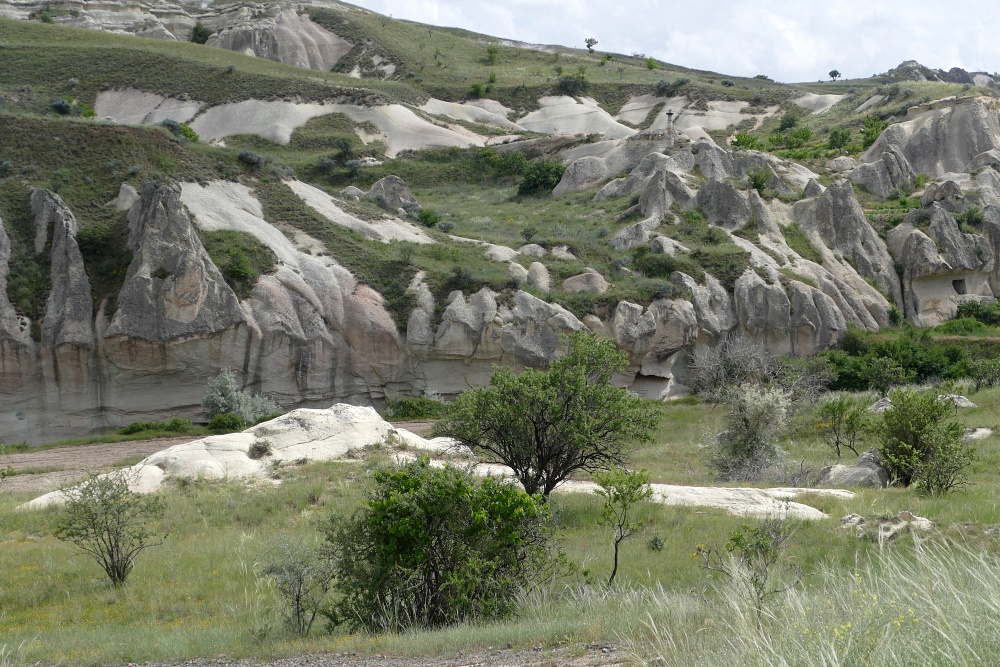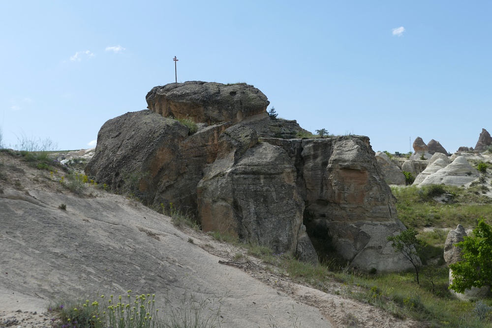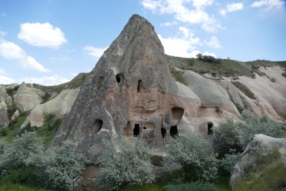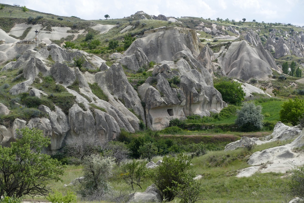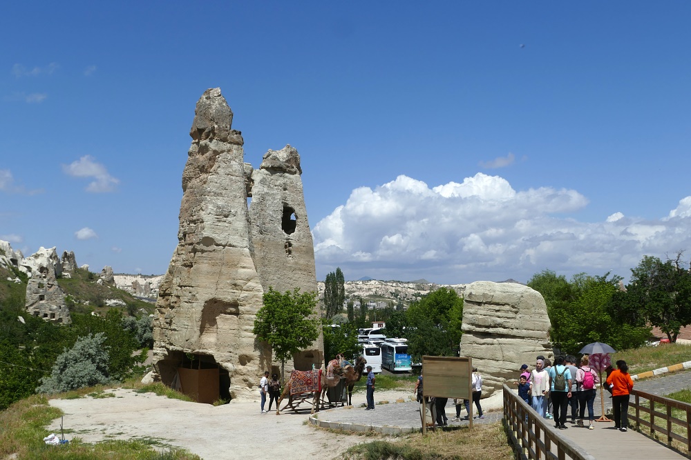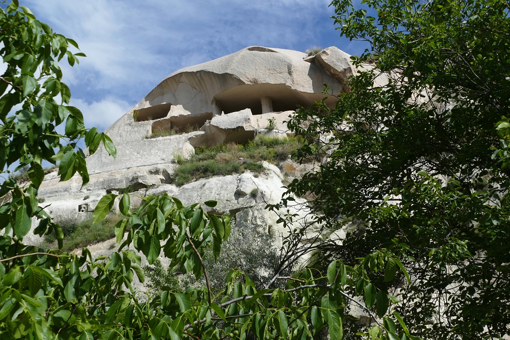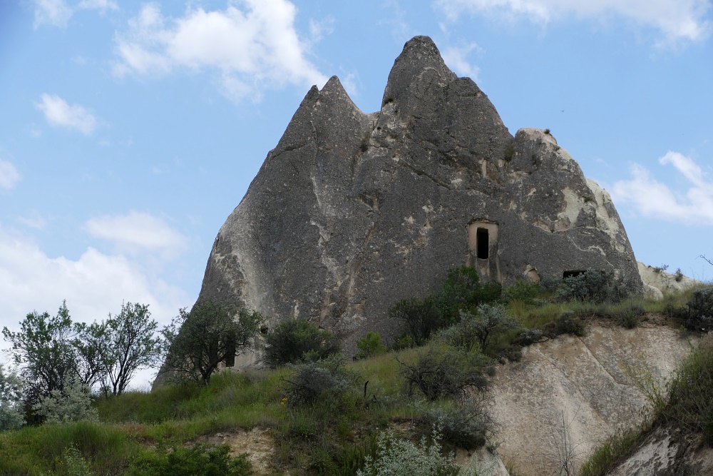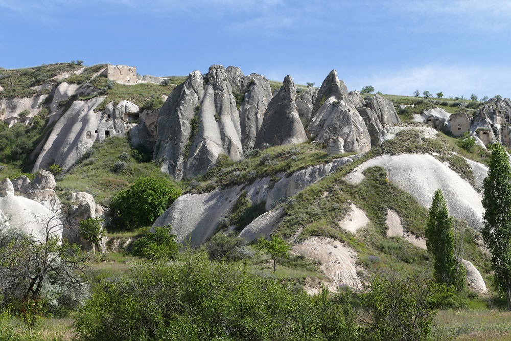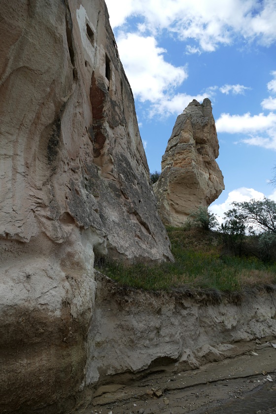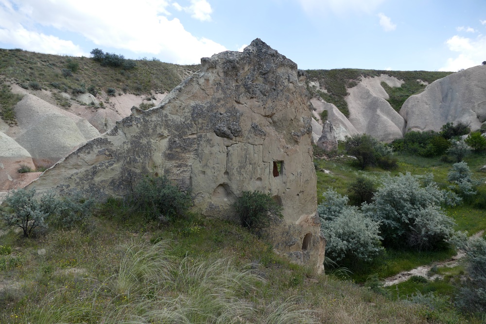 Wir haben die Hauptstraße überquert und schlendern durch Ortahisar. Auch mitten im Dorf sind interessante Formationen zu bewundern.