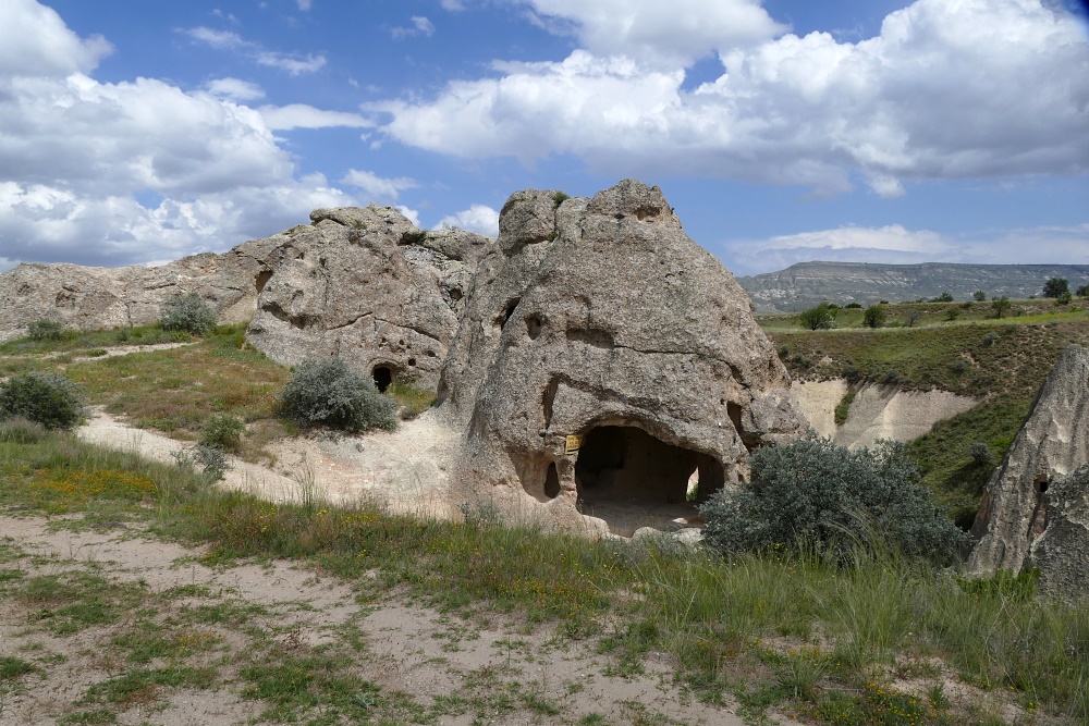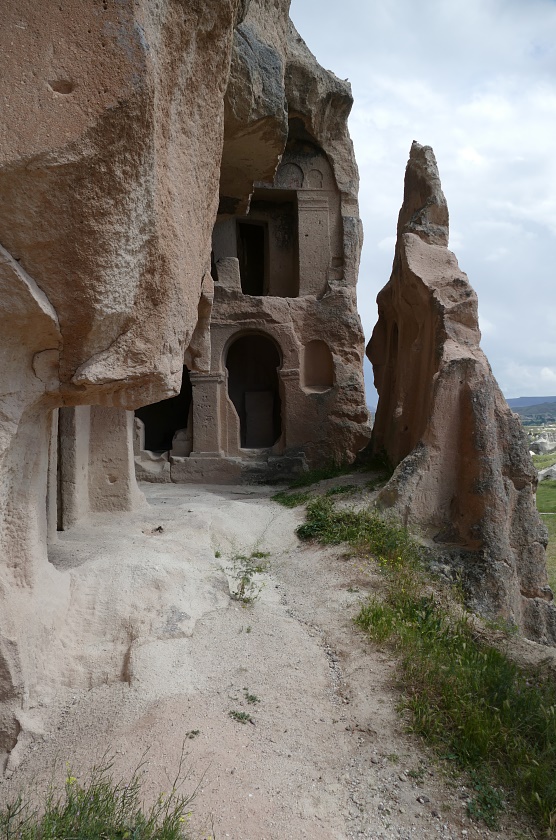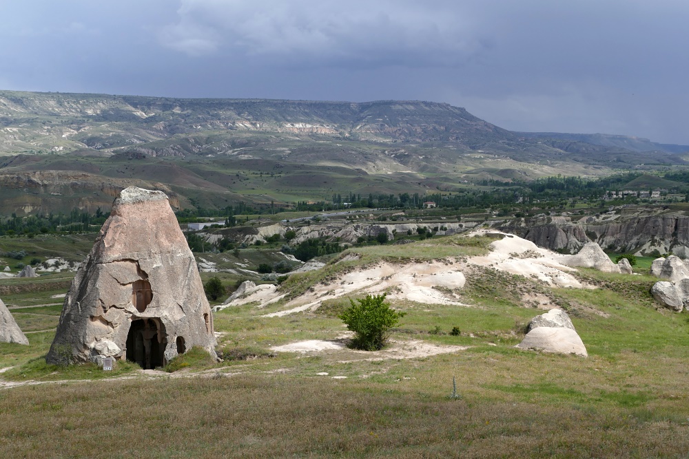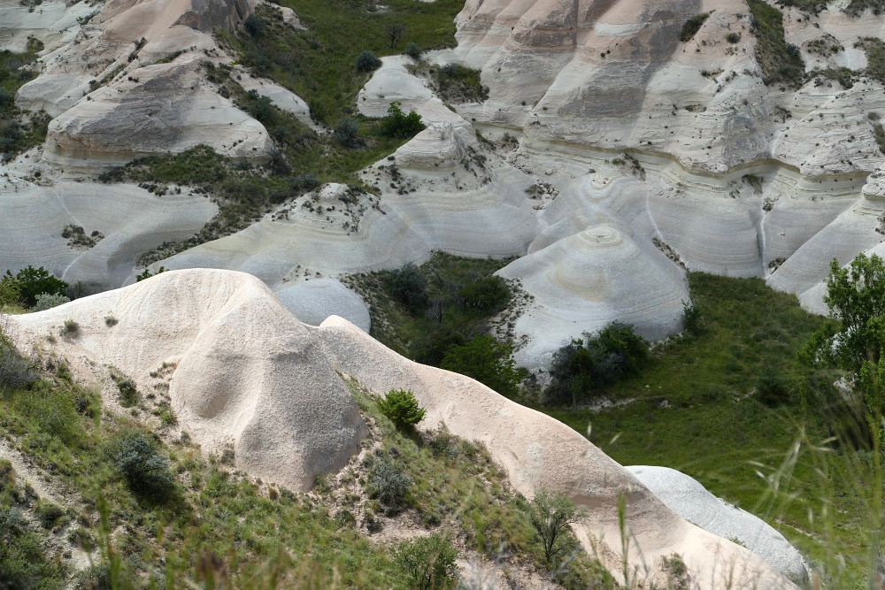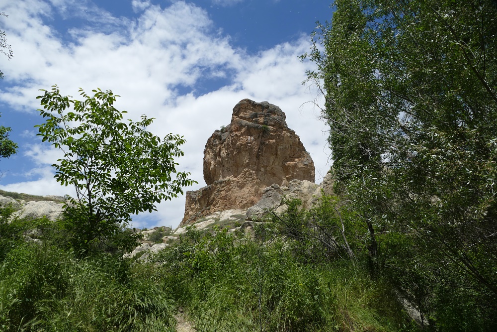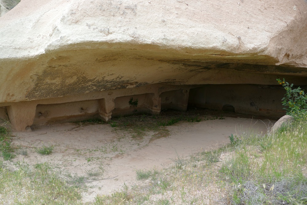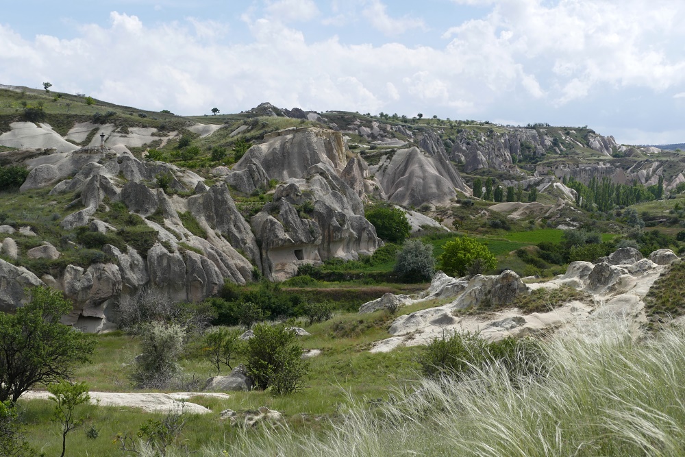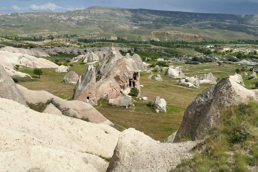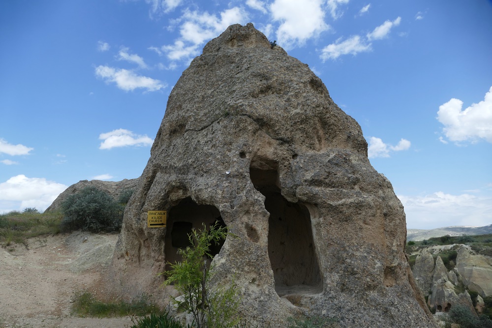 Wir haben die Hauptstraße überquert und schlendern durch Ortahisar. Auch mitten im Dorf sind interessante Formationen zu bewundern.