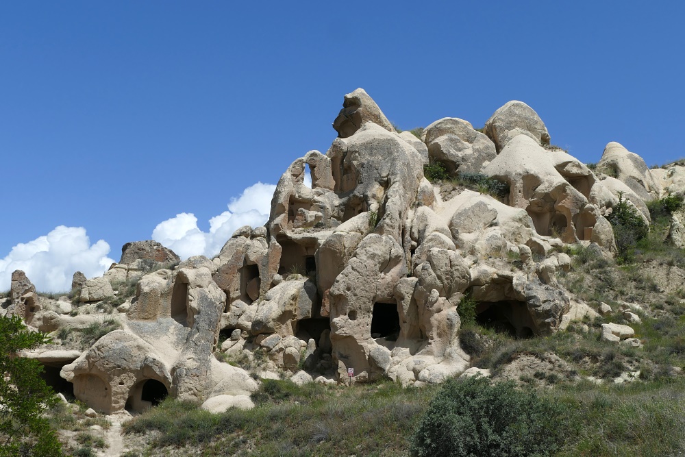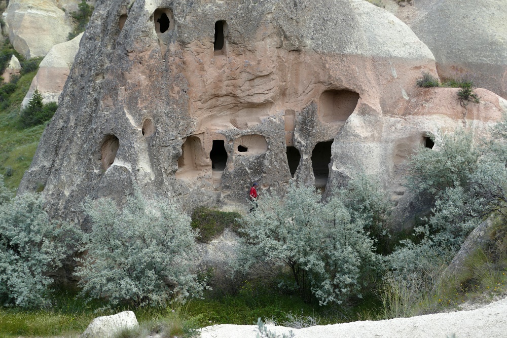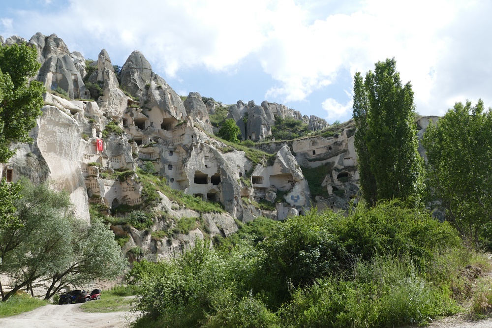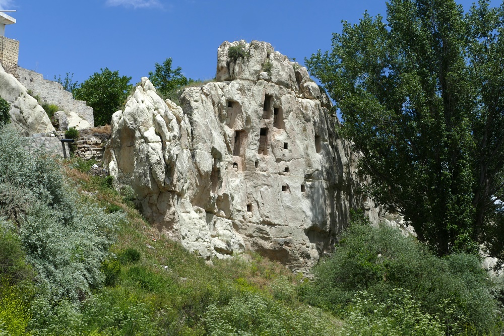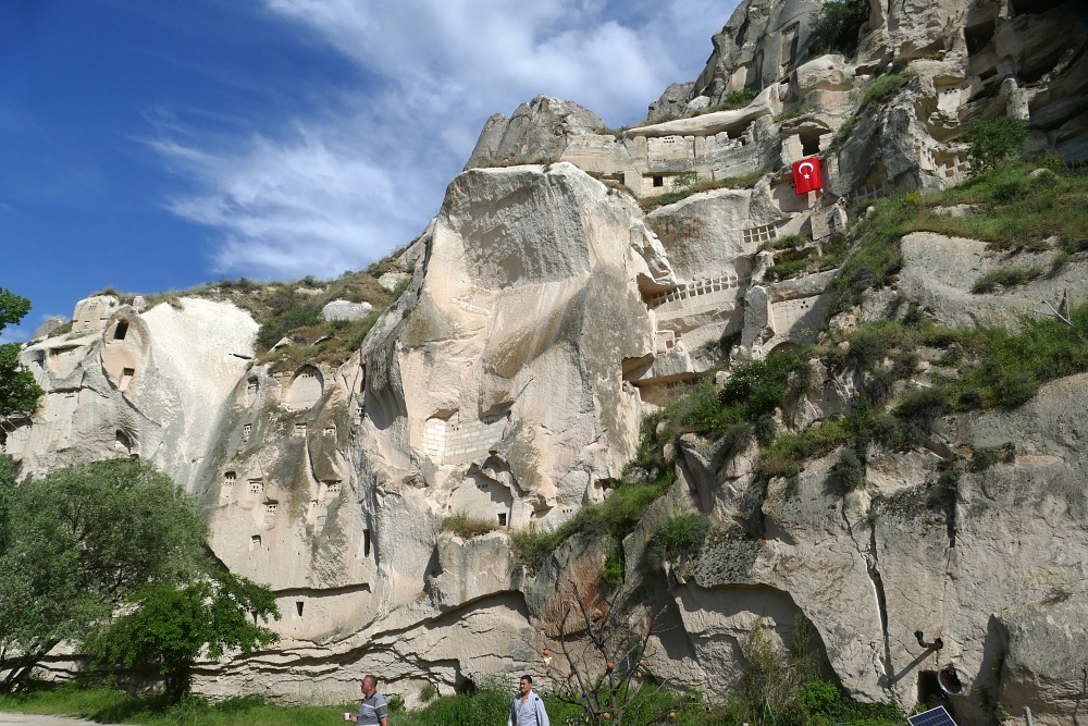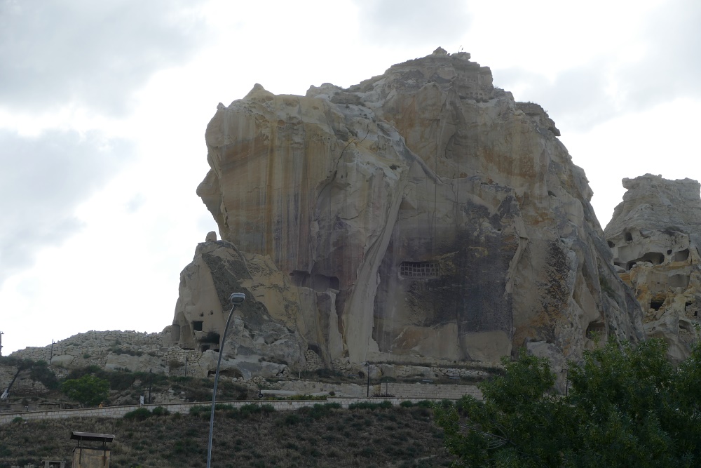 Wir sind nun bei der besonderen Sehenswürdigkeit angelangt: Höhlenwohnungen in der Felswand vermischt mit vielen Taubenschlägen