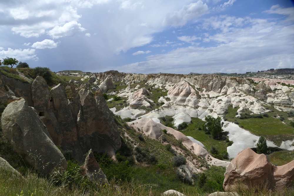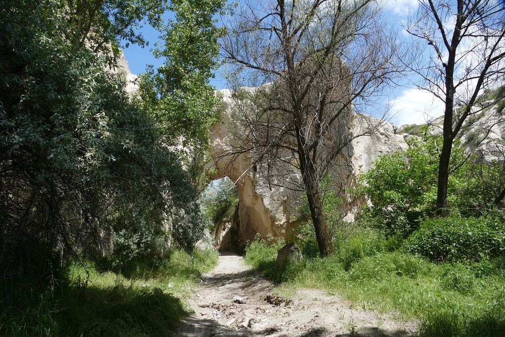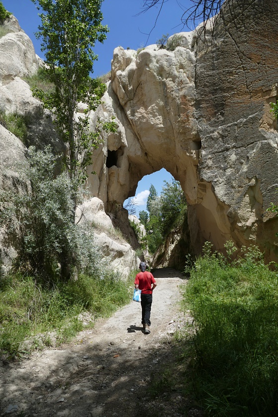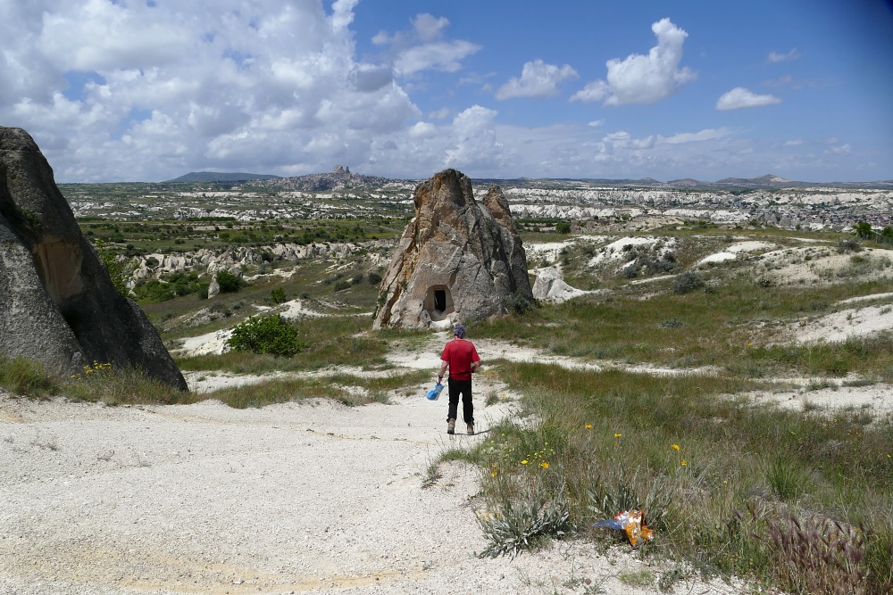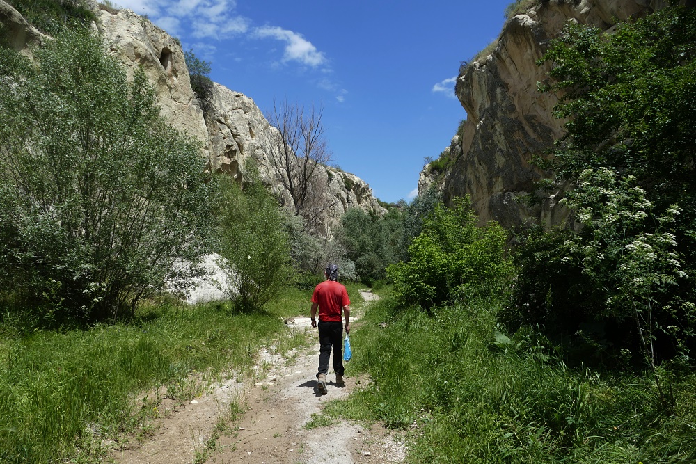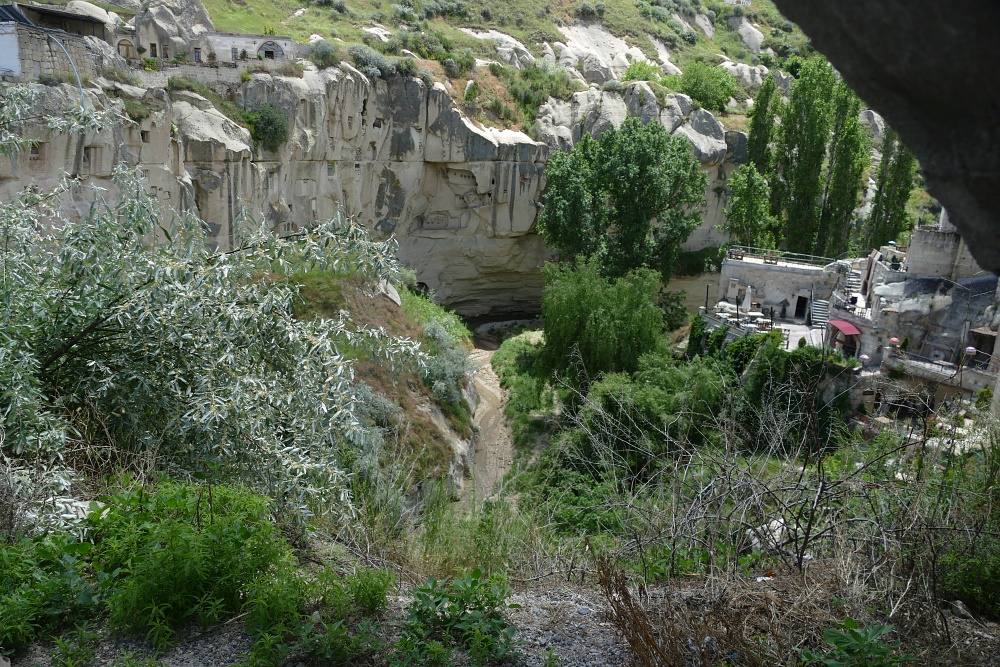 Ursprünglich wollten wir noch die Runde weiter bis Mustafapascha laufen, aber angesichts der fortgeschrittenen Zeit drehen wir um, mit Ürgüp als unserem Ziel. Das heißt, nochmal zurück am Wasser entlang und dann weiter zur Straße nach Ürgüp. Ein Pärchen ist so freundlich und nimmt uns den letzten Kilometer in ihrem Auto mit.