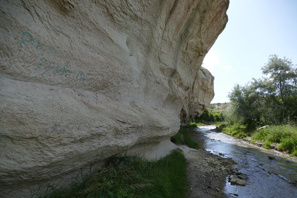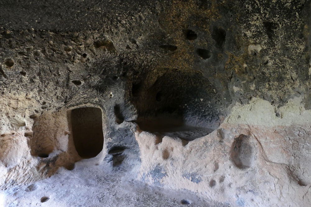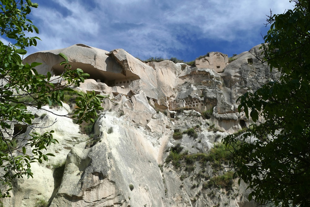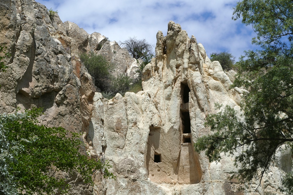Immer wieder sind in der Felswand Höhlenwohnungen zu sehen.