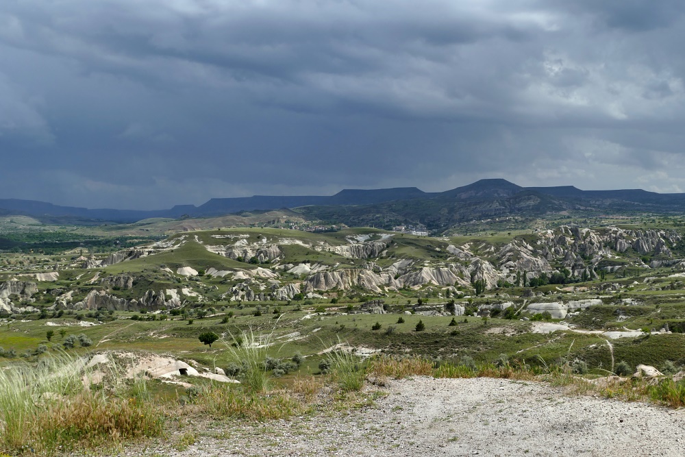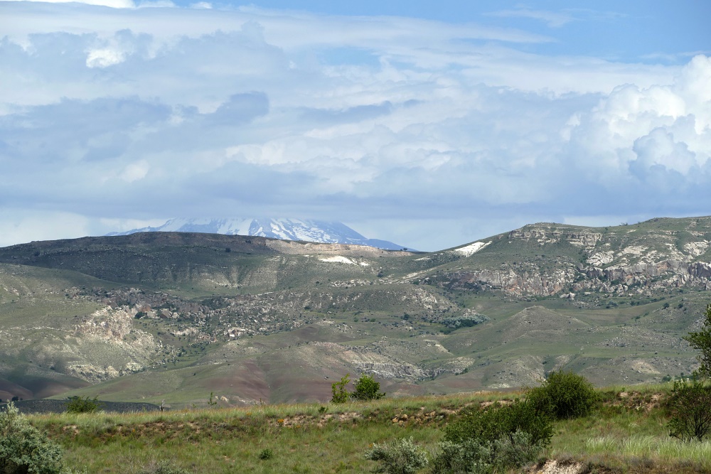 Für einen kurzen Moment lichtet sich die Bewölkung und in der Ferne wird der noch schneebedeckte 3000er bei Kayseri sichtbar.