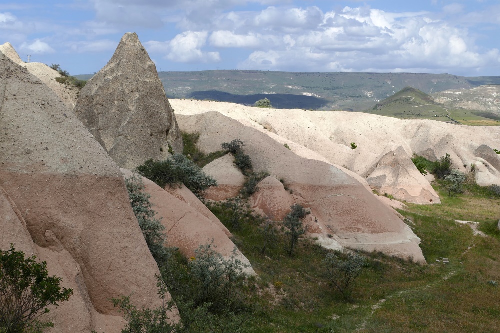 Der Plan ist, zunächst nach Ortahisar zu fahren und von dort aus im weiten Bogen nach Ürgüp zu wandern. Doch als kein Bus kommt, werden wir ungeduldig und wandern einfach los.