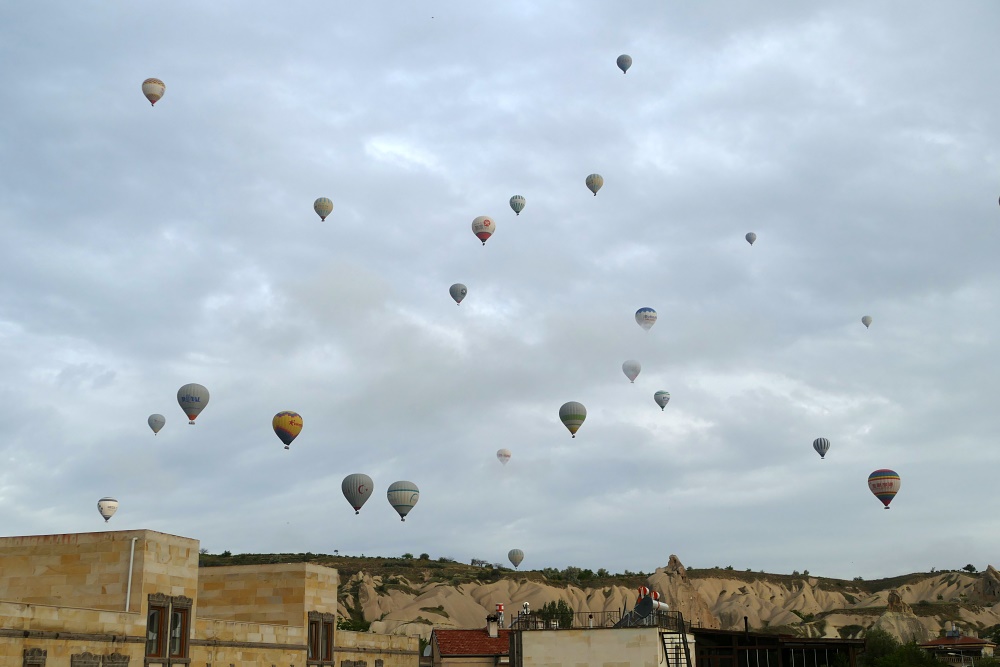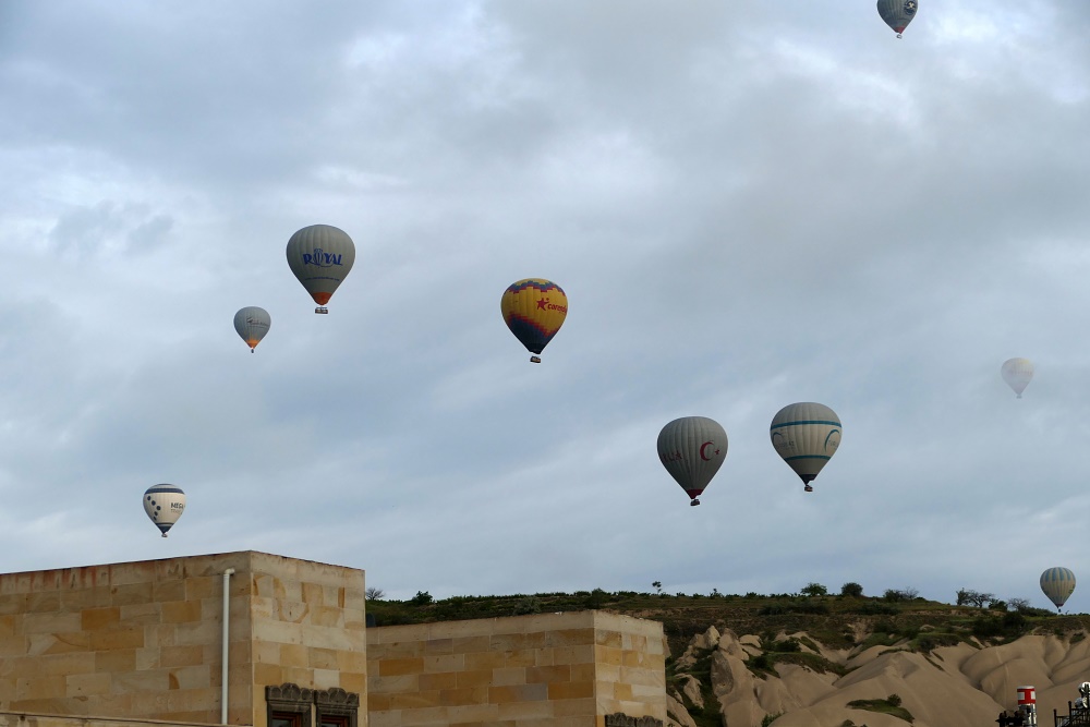 Am nächsten Tag heißt es Abschied nehmen von Göreme. Heute sind wir rechtzeitig wach, um die Heißluftballon-Flotte über den Feernkaminen beobachten zu können.