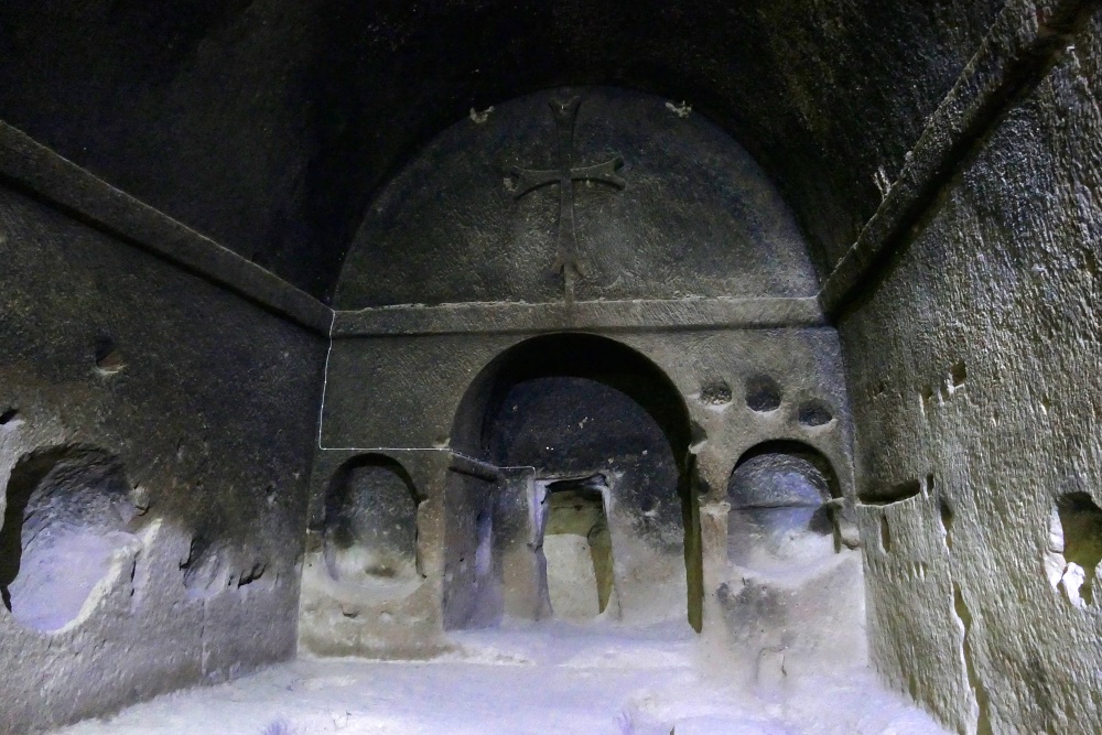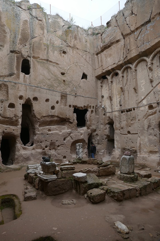 Von Göreme geht es zunächst mit dem Minibus nach Nevsehir, wo wir in der Innenstadt gleich auf den Überlandbus nach Nidge umsteigen können. Dort suchen wir uns zunächst eine Unterkunft, dann geht es wegen einer verlorenen Kreditkarte noch zur Bank. Anschließend wollen wir uns noch das alte Höhlenkloster in Gümüsler anschauen. Also begeben wir uns zum Stadtbusterminal in Nigde. Mit vielen mit Markteinkäufen vollbepackten Frauen und Männern geht es nach einiger Wartezeit nach Gümüsler.