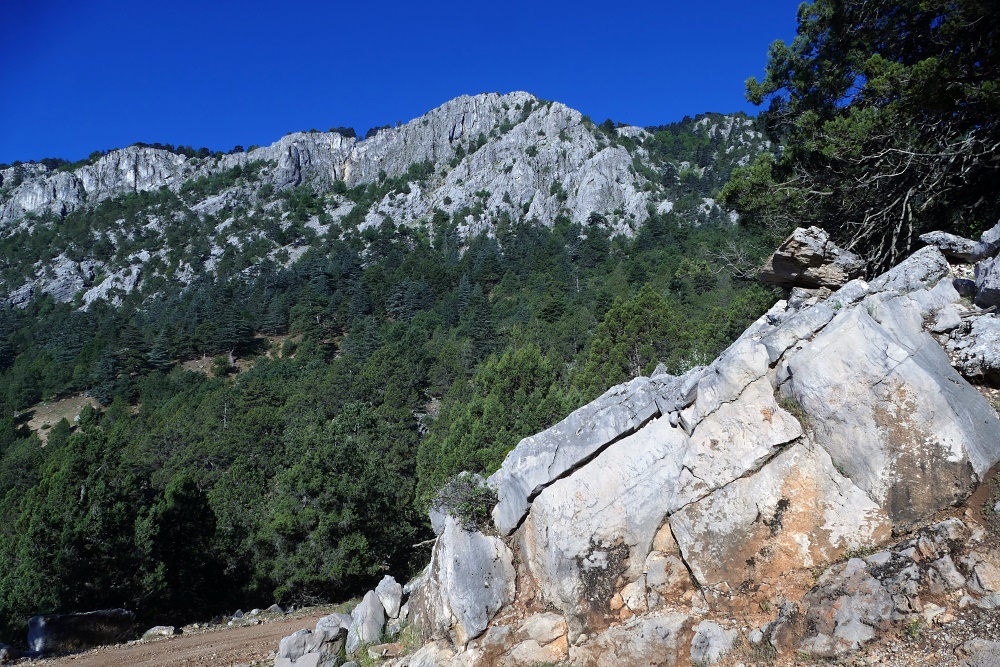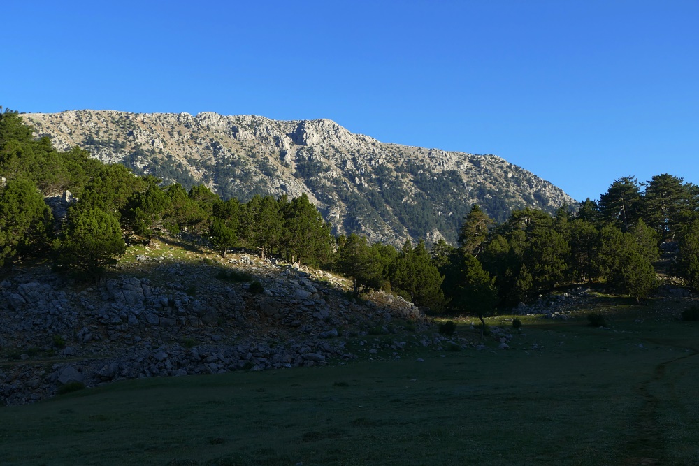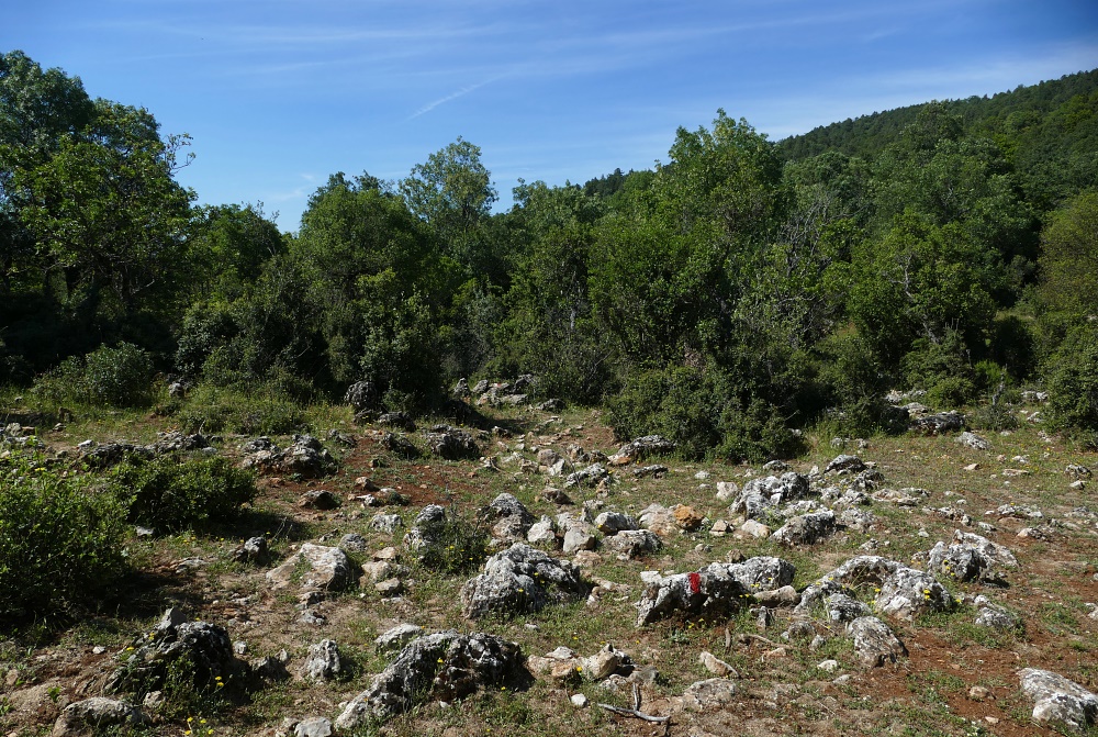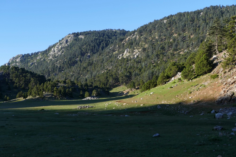 Am nächsten Morgen geht es noch leicht aufsteigend durch den Wald, danach quert man eine etwas offenere Fläche.