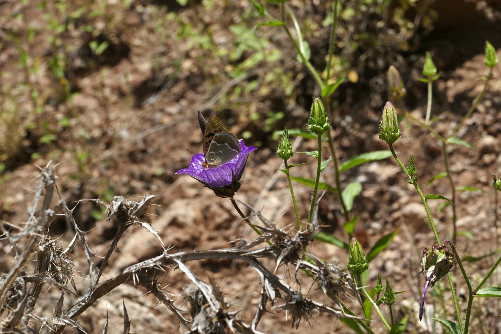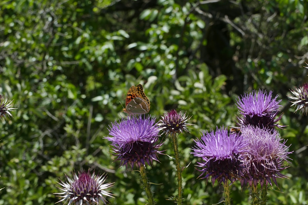 Am Wegesrand blühen auch hier Disteln, an deren Nektar sich die Schmetterlinge laben.