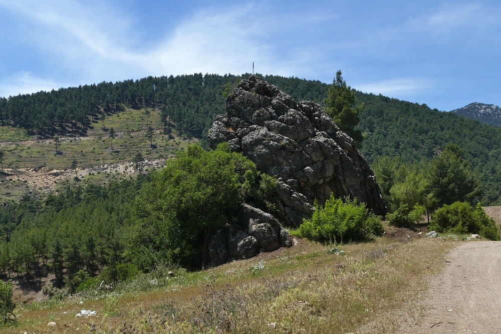 Der Tipp von Ibrahim aus Egirdir hat sich bewährt: Während der ganzen Strecke gab es keine Wasserquelle, so dass ich mich für den Aufstieg mit reichlich Wasser hätte bevorraten müssen. Lediglich kurz vor dem Dorf gab es einen einzelnen Brunnen, der aber so von Tausenden von Bienen auf der Suche nach dem kühlenden Nass umschwärmt wurde, dass eine Annäherung unmöglich war.