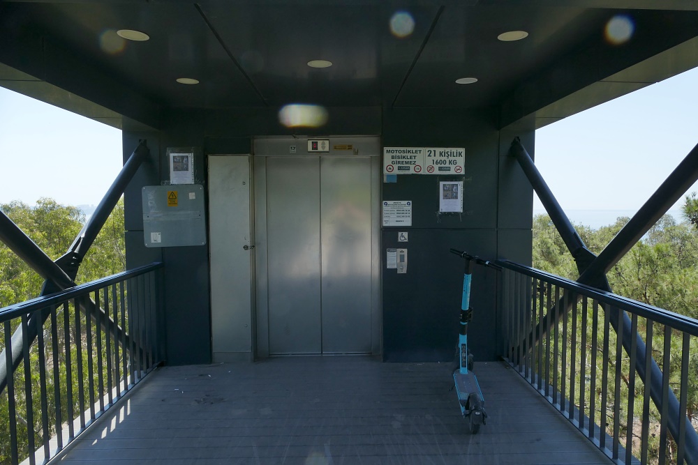 Wer jetzt einen schweißtreibenden Anstieg vermutet, der irrt zum Glück. Denn hier geht es mit einem öffentlichen Lift in wenigen Sekunden in die Höhe. Oben benutzt man den Steg und schon hat man den Atatürk-Park erreicht.