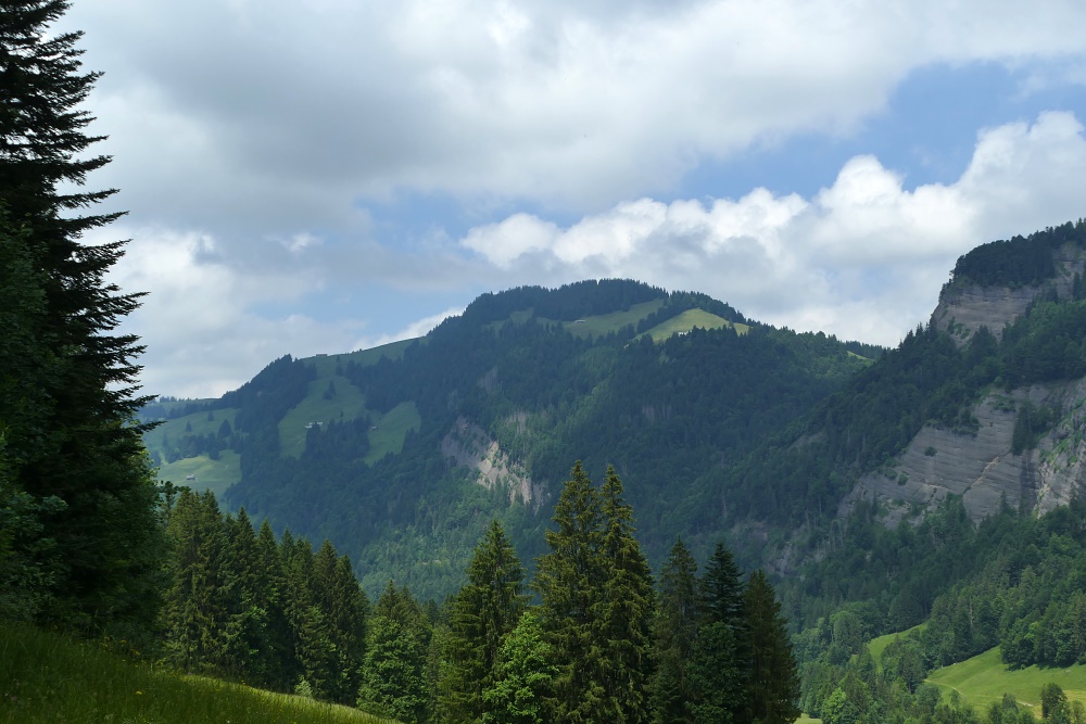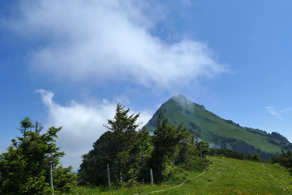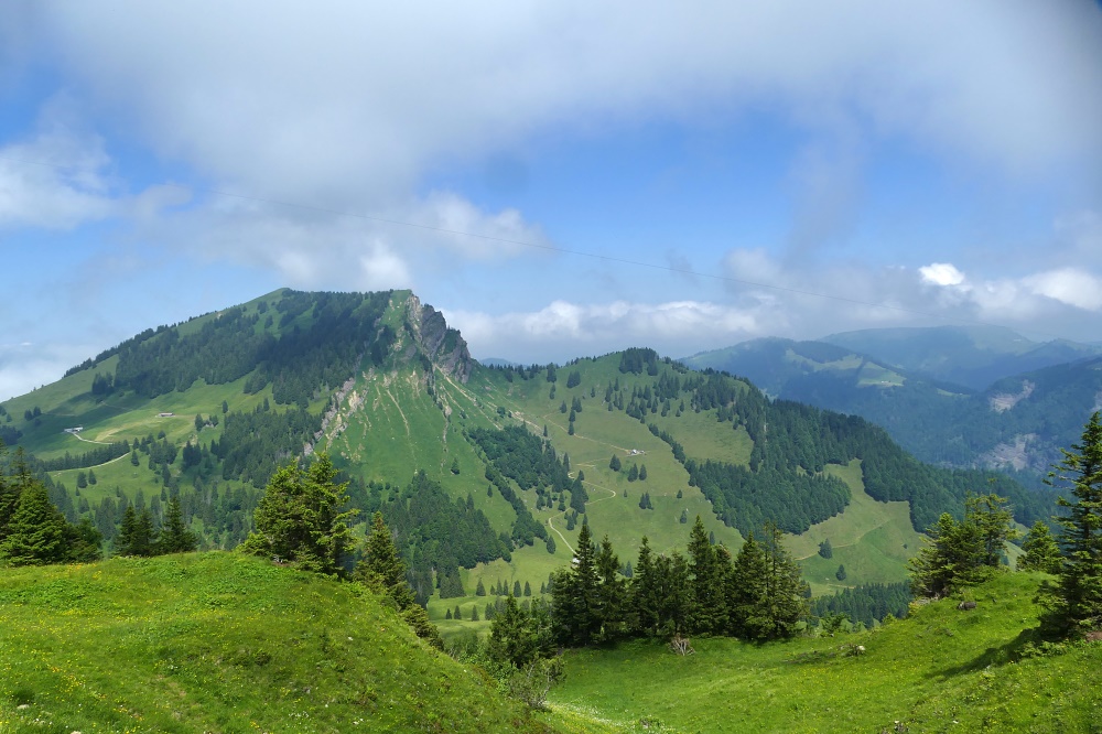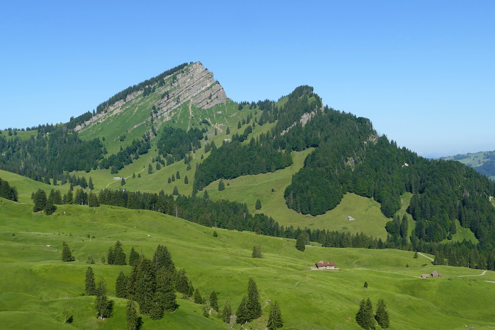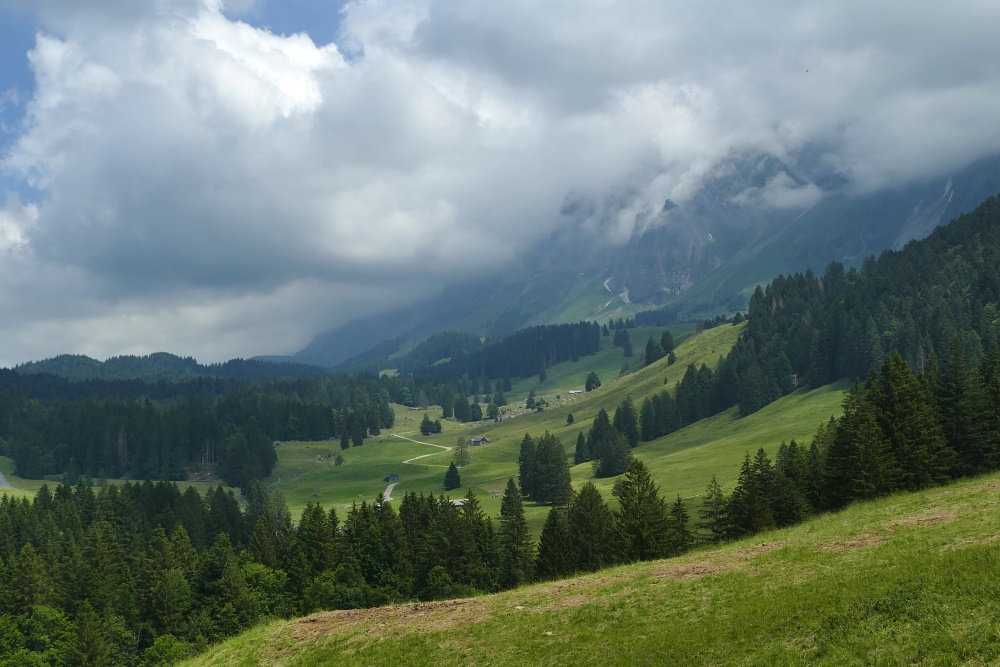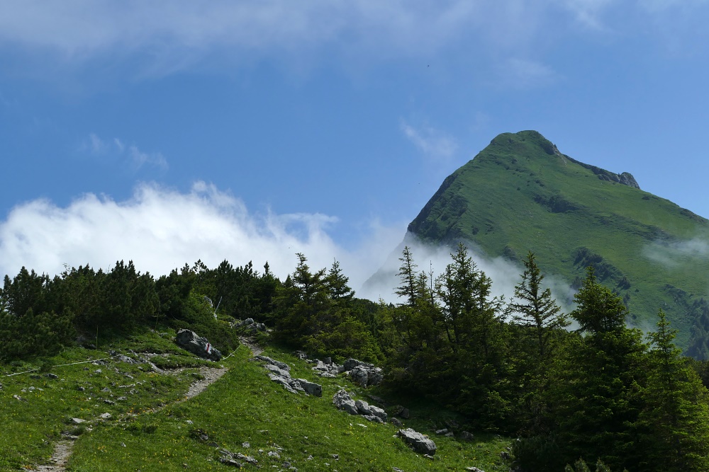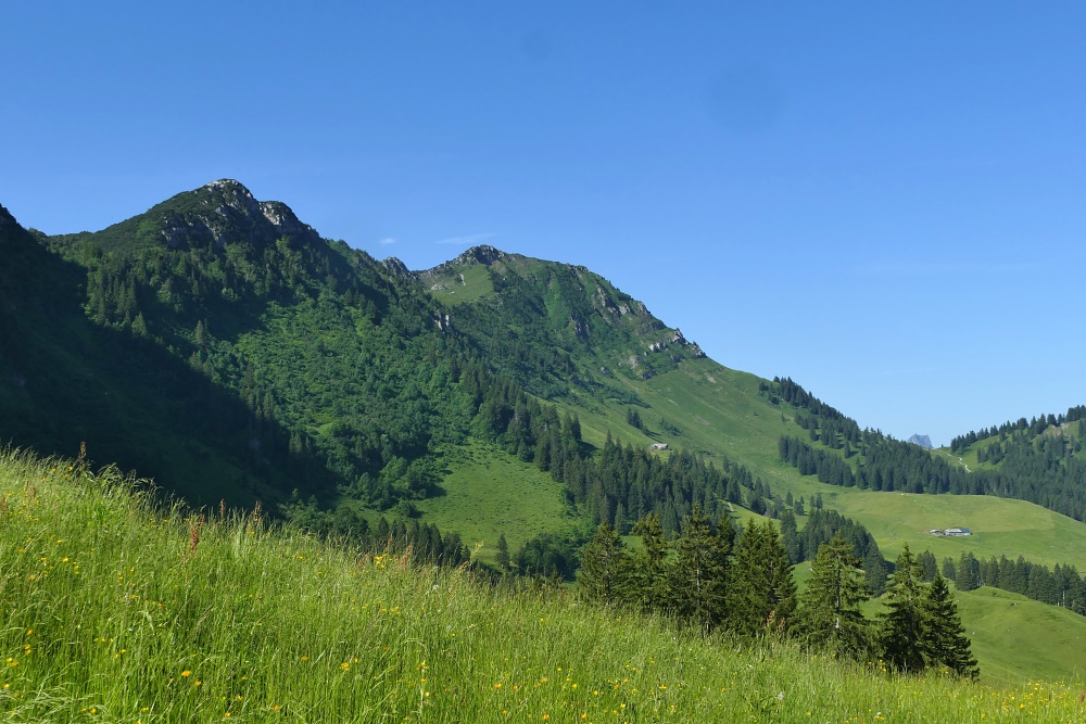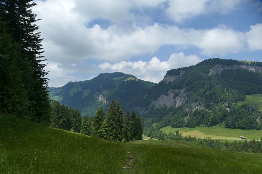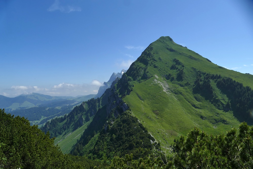 bei Aufstieg: Blick am Lütispitz vorbei - auf den Grasflanken verläuft der Sommerweg zur Lauchwies.