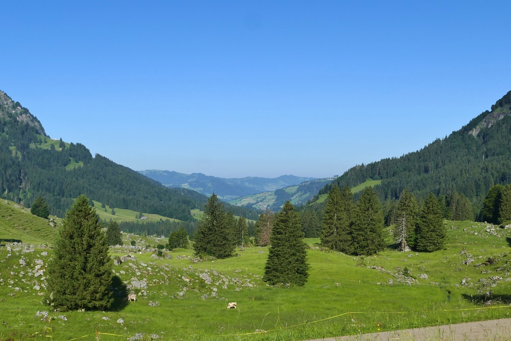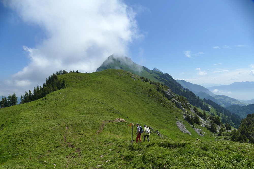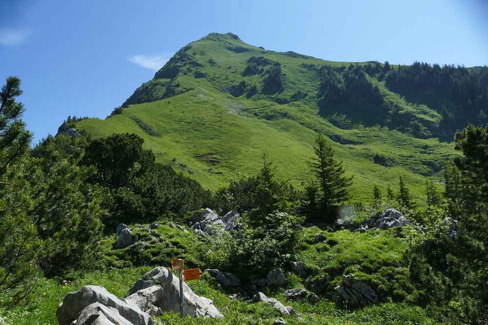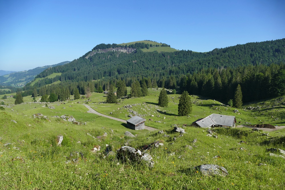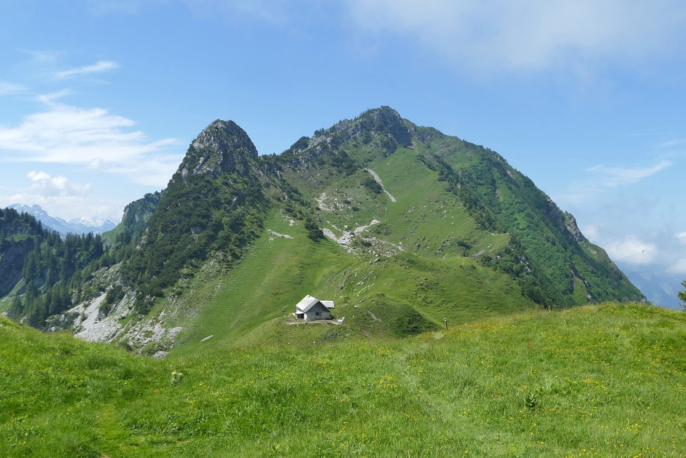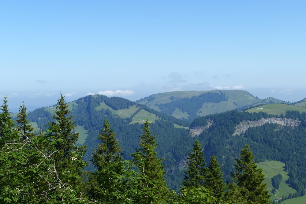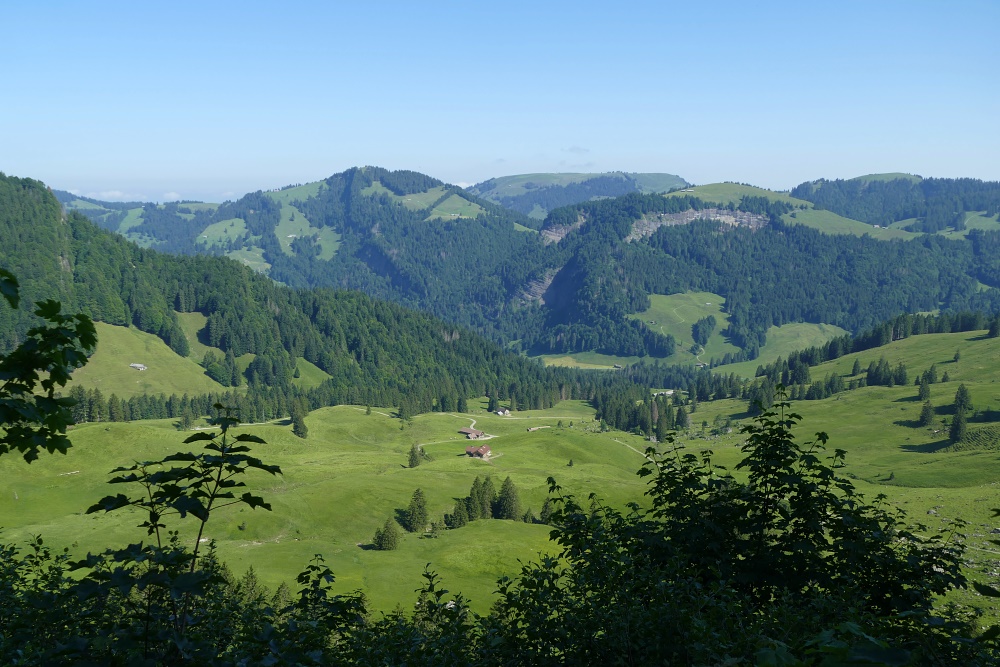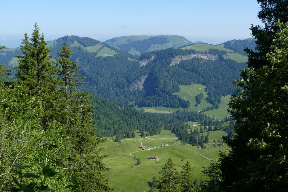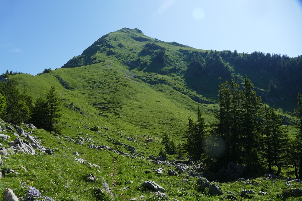 bei Aufstieg: Blick am Lütispitz vorbei - auf den Grasflanken verläuft der Sommerweg zur Lauchwies.