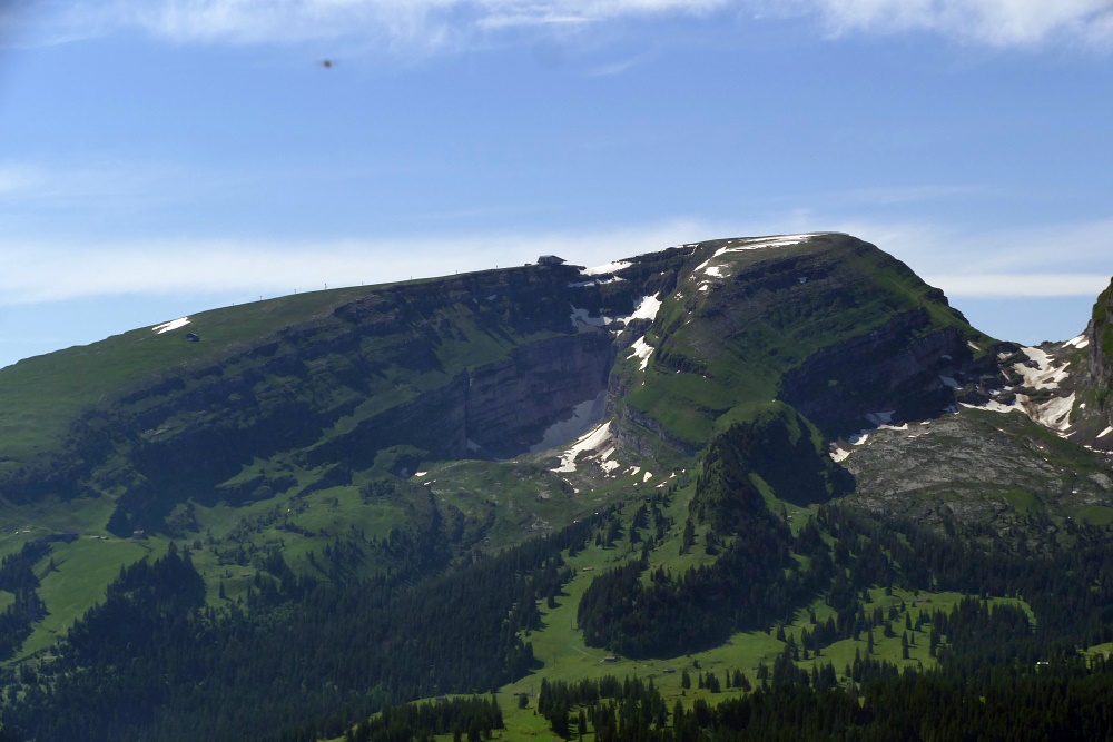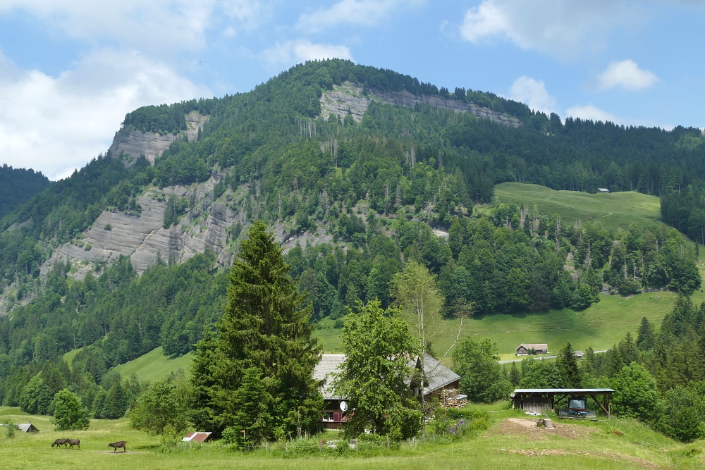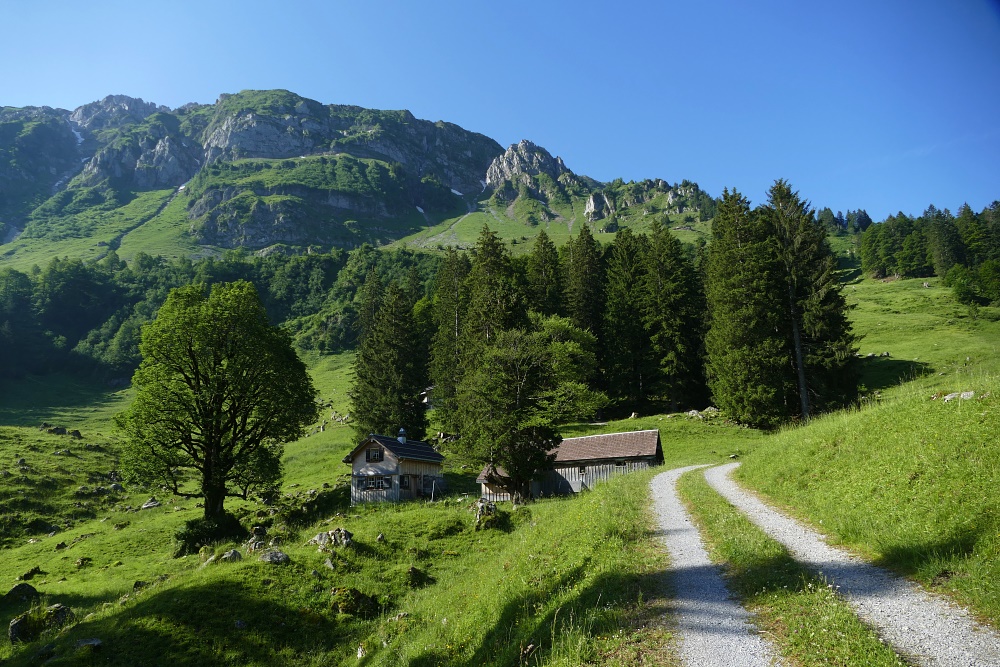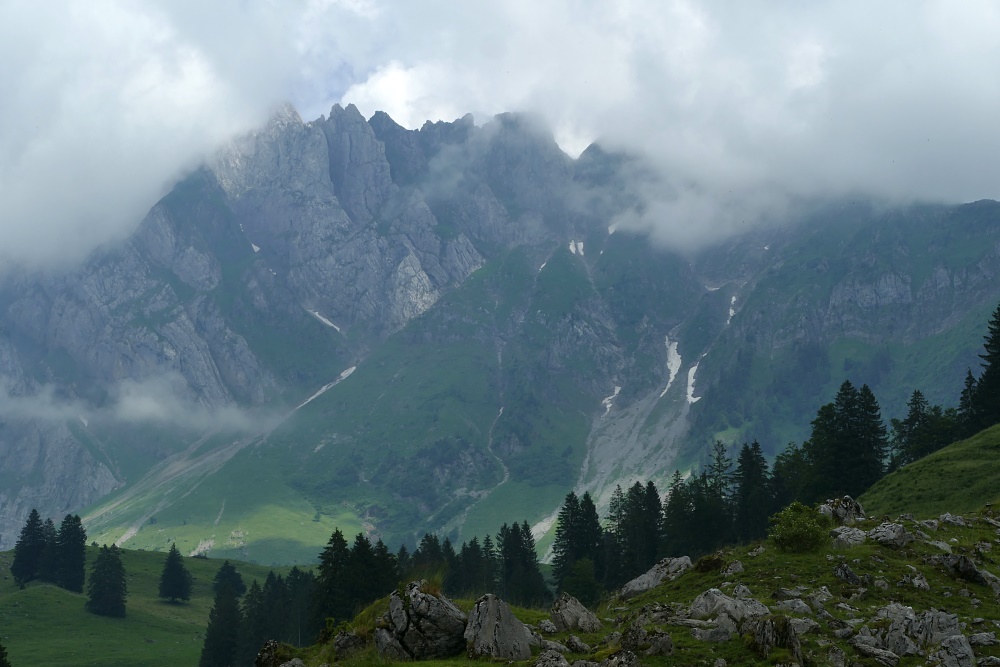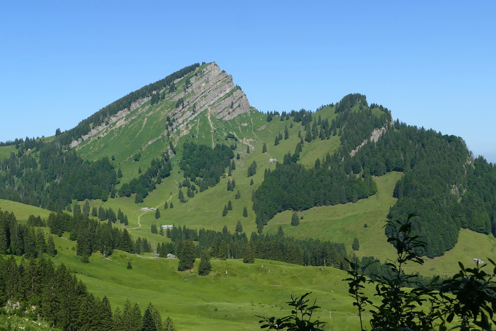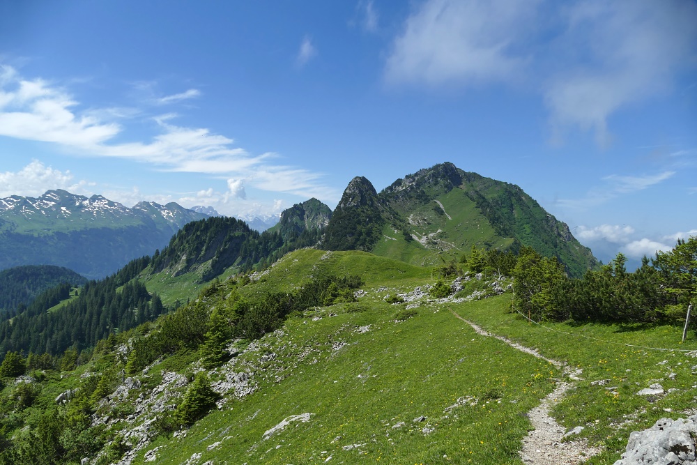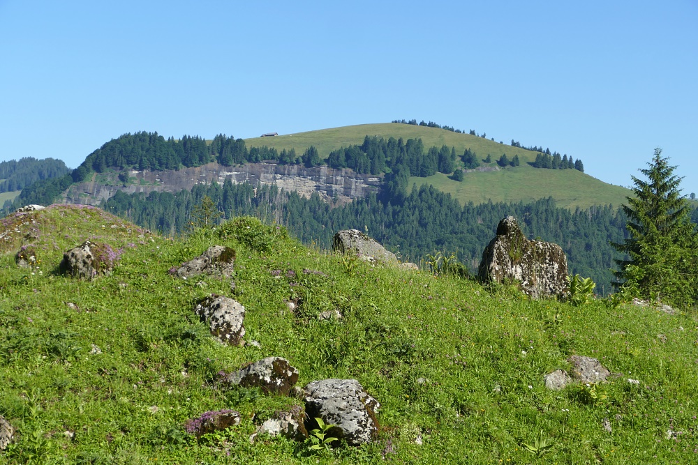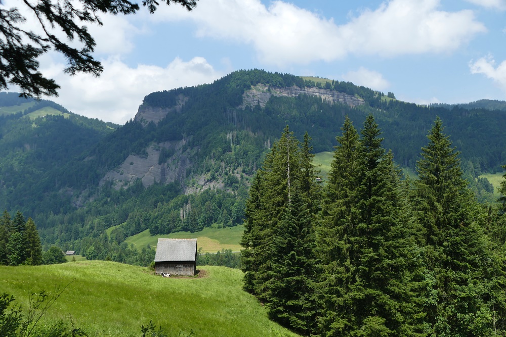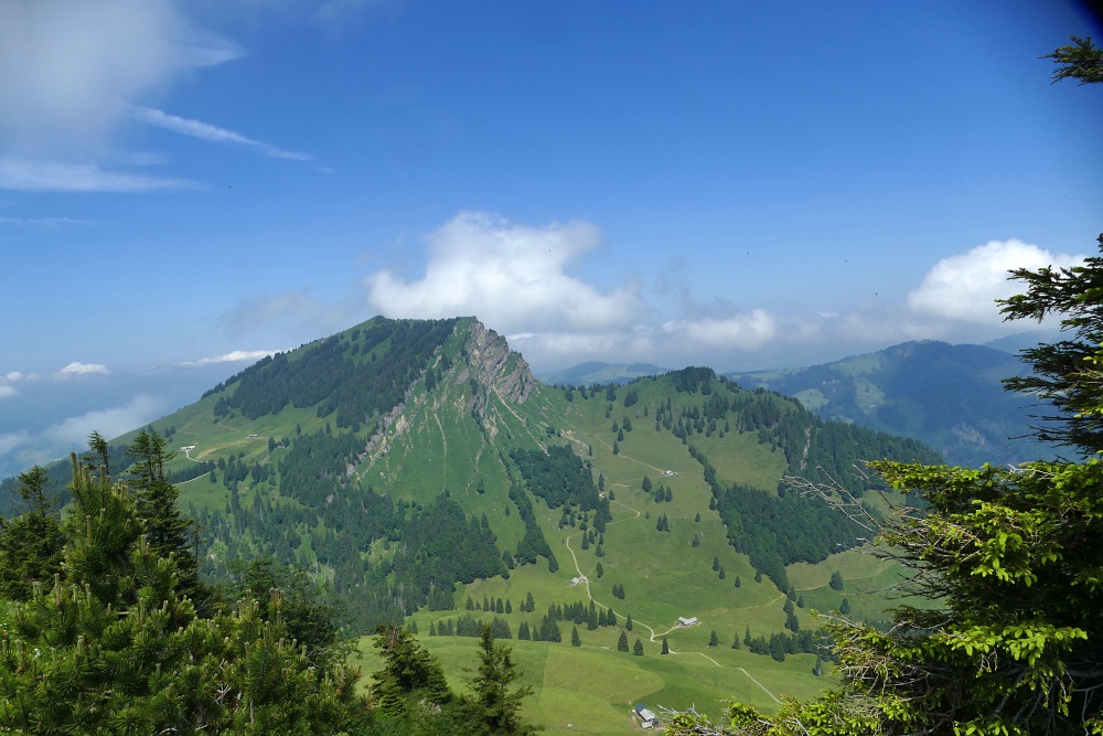bei Aufstieg: Blick am Lütispitz vorbei - auf den Grasflanken verläuft der Sommerweg zur Lauchwies.