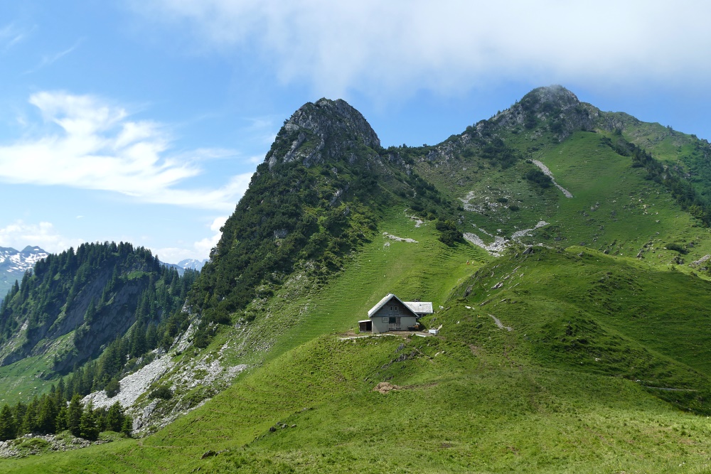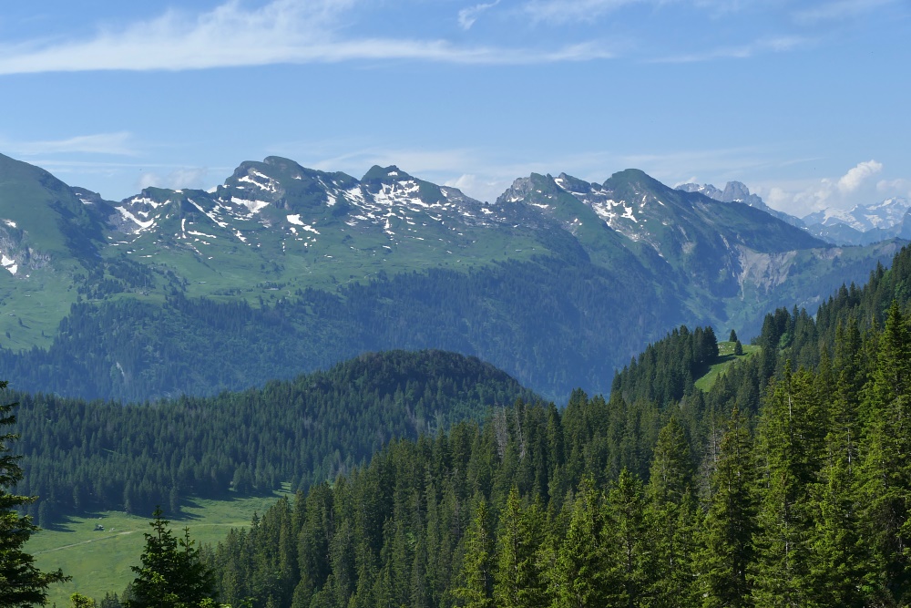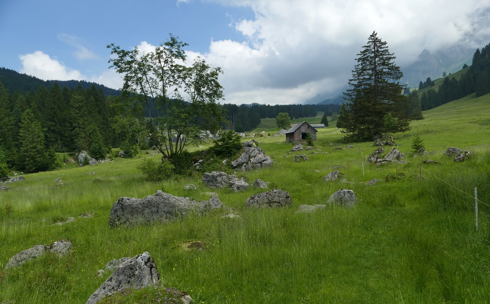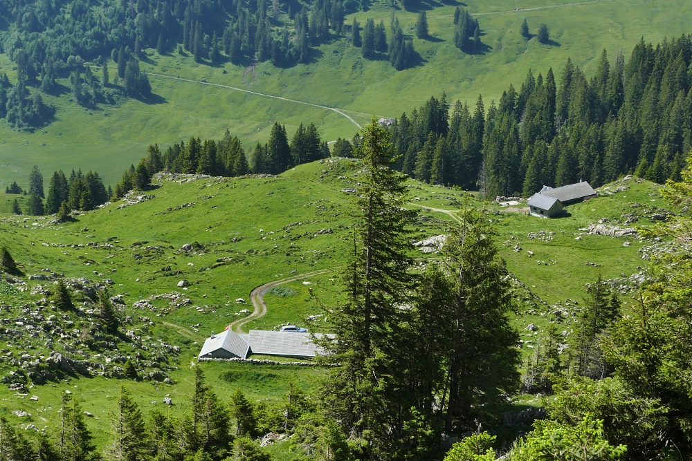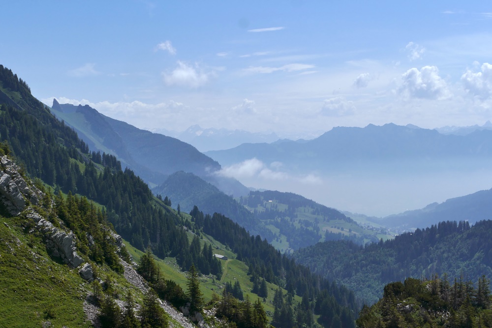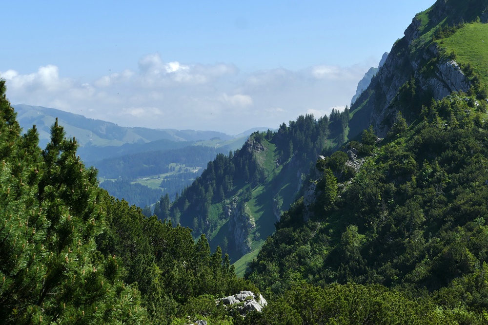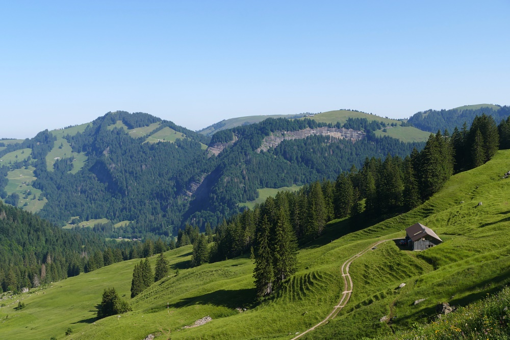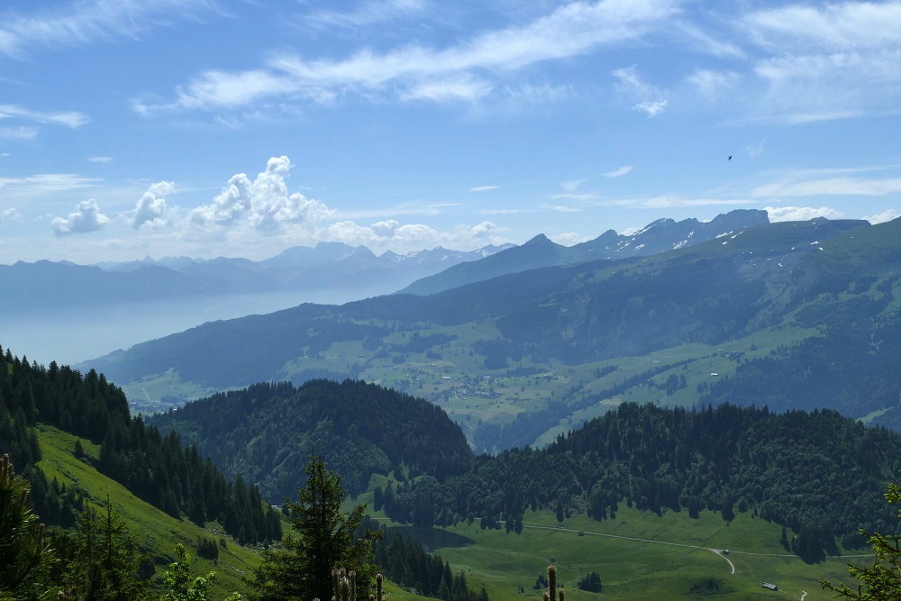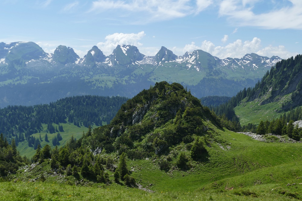 bei Aufstieg: Blick am Lütispitz vorbei - auf den Grasflanken verläuft der Sommerweg zur Lauchwies.
