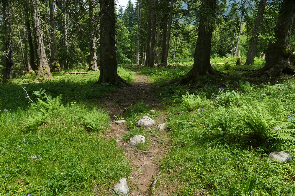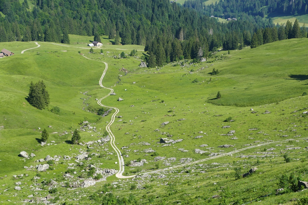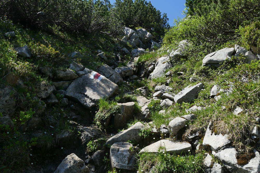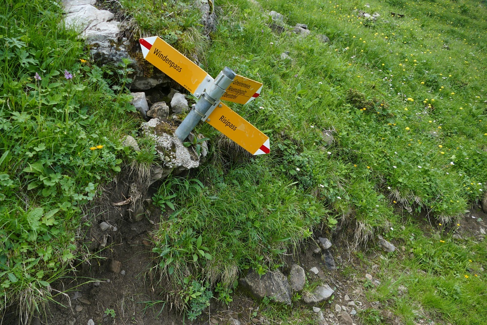 Nach dem Risipass folge ich nicht der Schotterstraße, sondern biege auf den Gerli-Leser-Weg ab.