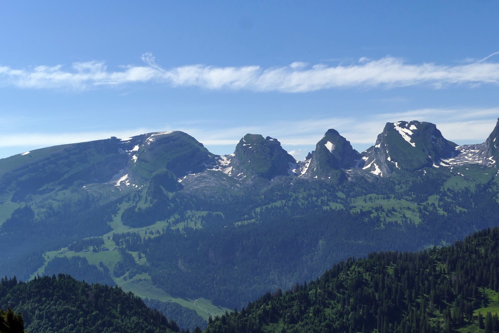 die charakteristischeren Churfirstengipfel: Hinterrugg, Schibenstoll, Zuestoll und Brisi